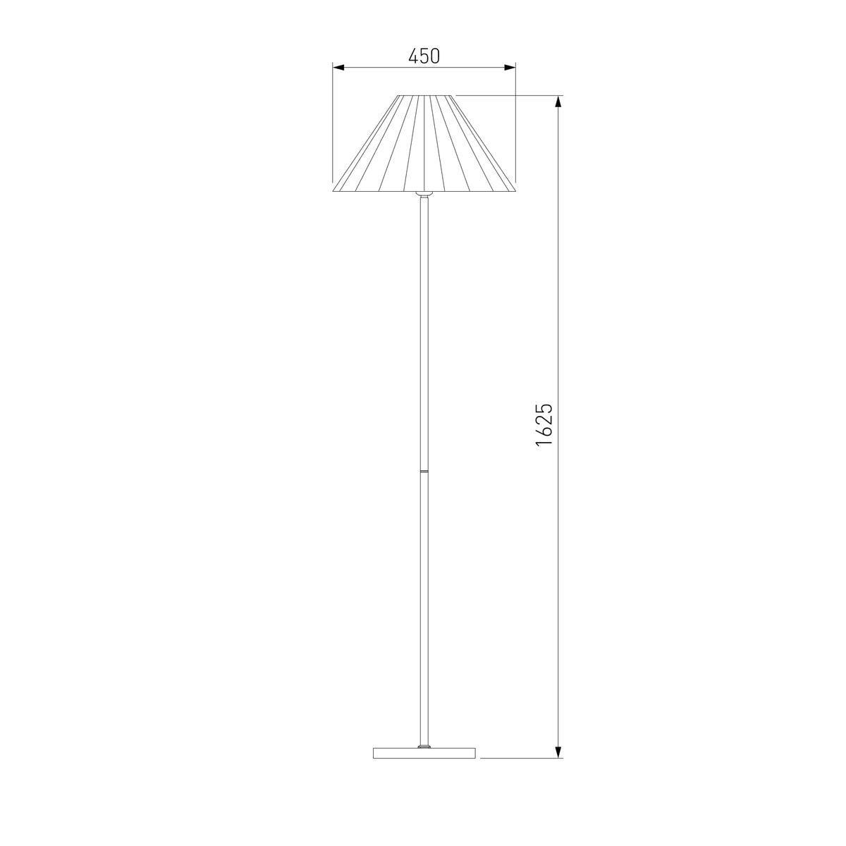 Для торшера необходима 1 40 W и цоколем E27. Лампы приобретаются отдельно. Габариты изделия: высота – 1625 мм, диаметр – 450 мм.