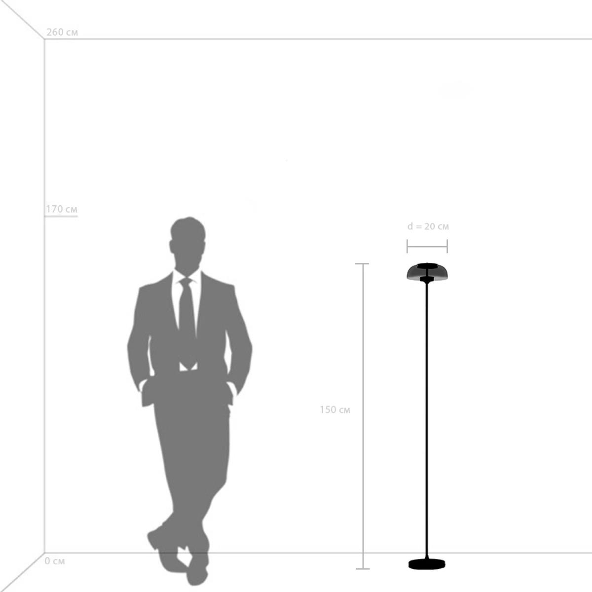 Для торшера необходима 1 светодиодная лампа 7 W и цоколем LED. Лампы приобретаются отдельно. Габариты изделия: высота – 1500 мм, диаметр – 200 мм.