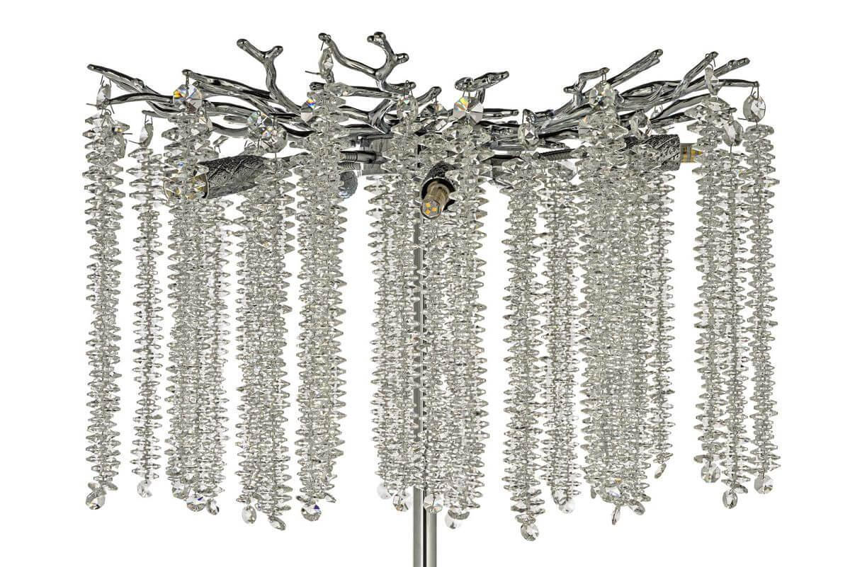 Для торшера необходима 5 галогеновых ламп 40 W и цоколем G9. Лампы приобретаются отдельно. Габариты изделия: высота – 1650 мм, диаметр – 520 мм.