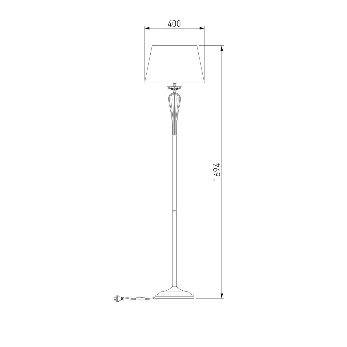 Для торшера необходима 1 лампа накаливания 60 W и цоколем E27. Лампы приобретаются отдельно. Габариты изделия: высота – 1694 мм