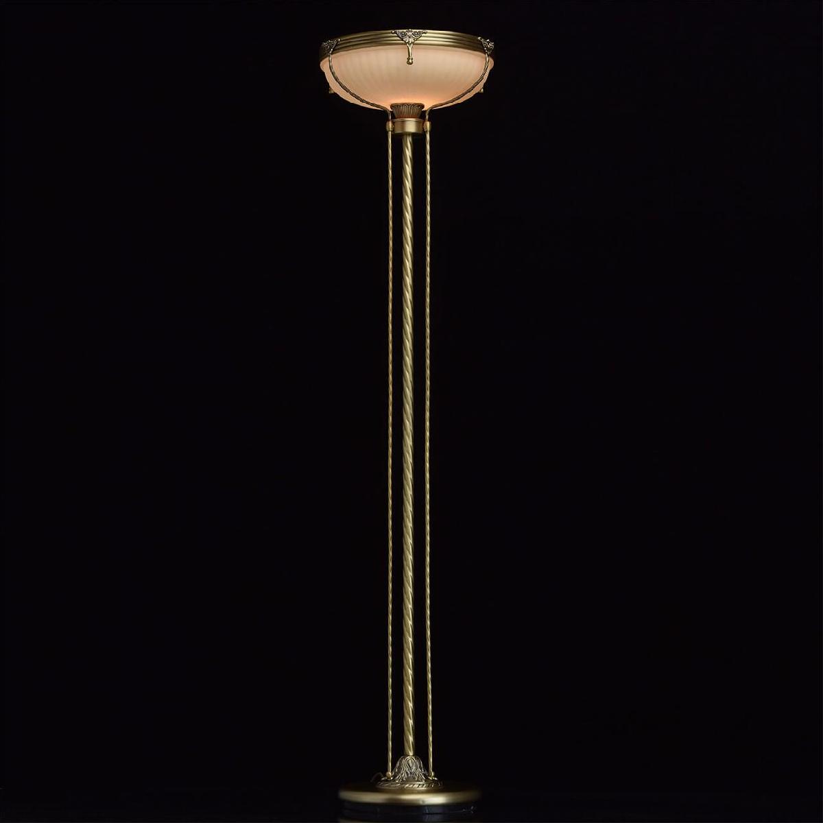 Для торшера необходима 1 лампа накаливания 60 W и цоколем E27. Лампы приобретаются отдельно. Габариты изделия: высота – 1690 мм, диаметр – 420 мм.