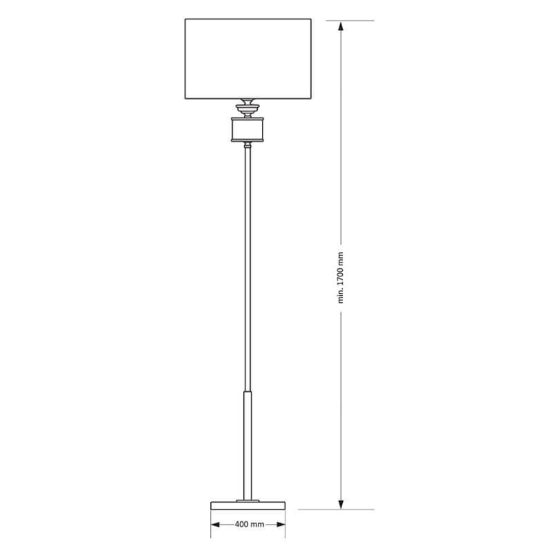 Для торшера необходима 1 лампа накаливания 60 W и цоколем E27. Лампы приобретаются отдельно. Габариты изделия: высота – 1700 мм, диаметр – 400 мм.