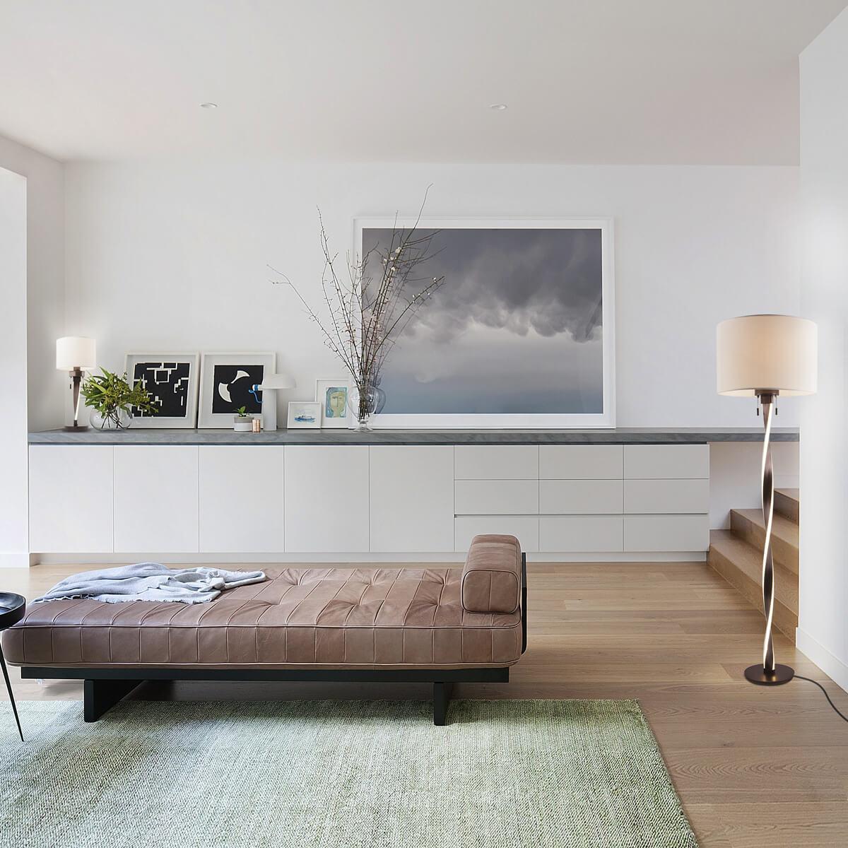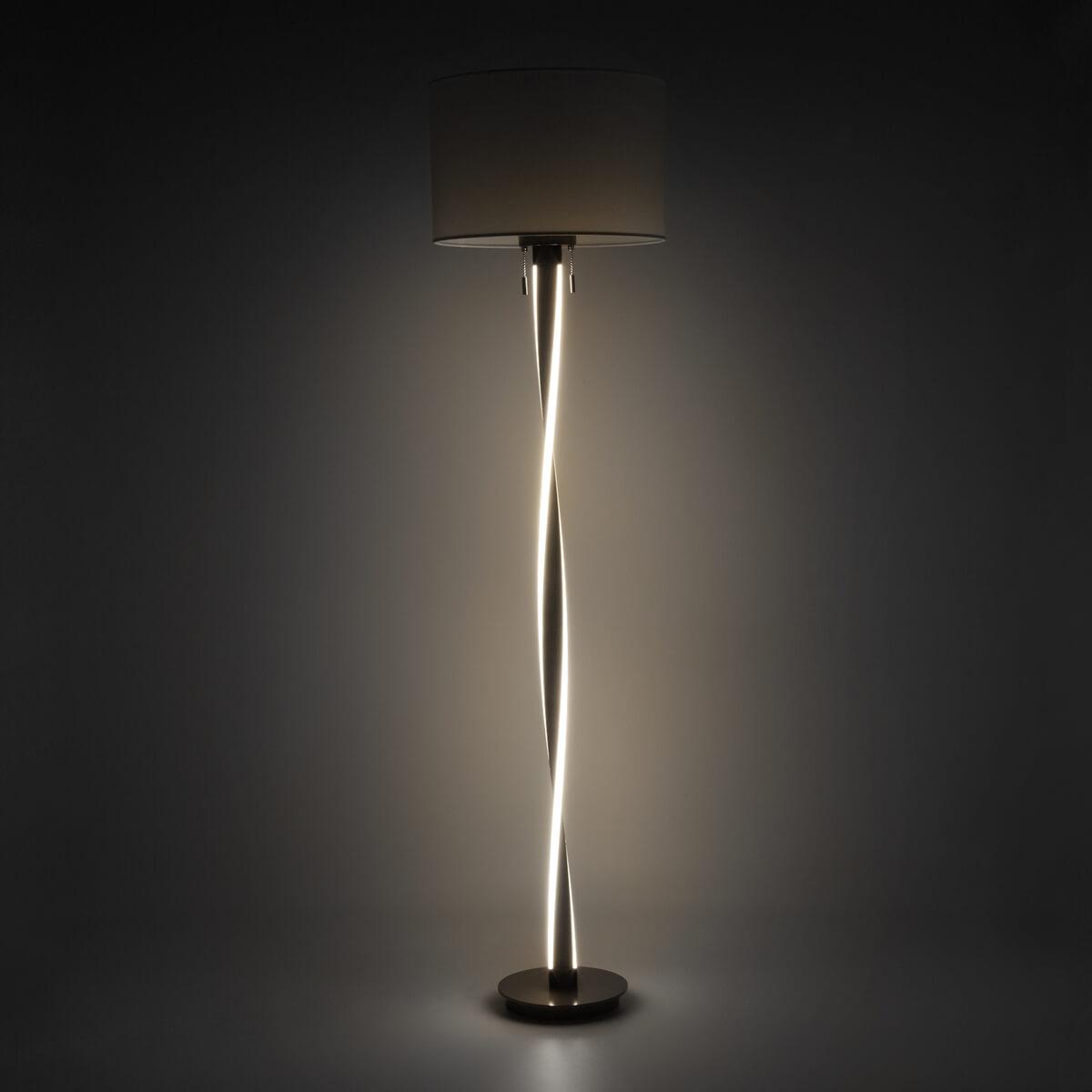 Для торшера необходима 1 лампа накаливания 60 W и цоколем E27. Лампы приобретаются отдельно. Габариты изделия: высота – 1600 мм, диаметр – 400 мм.