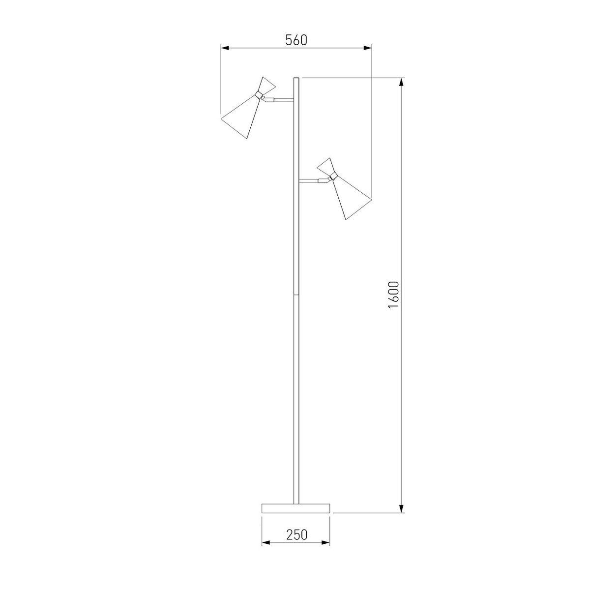 Для торшера необходима 2 лампы накаливания 60 W и цоколем E14. Лампы приобретаются отдельно. Габариты изделия: высота – 1600 мм, диаметр – 560 мм.