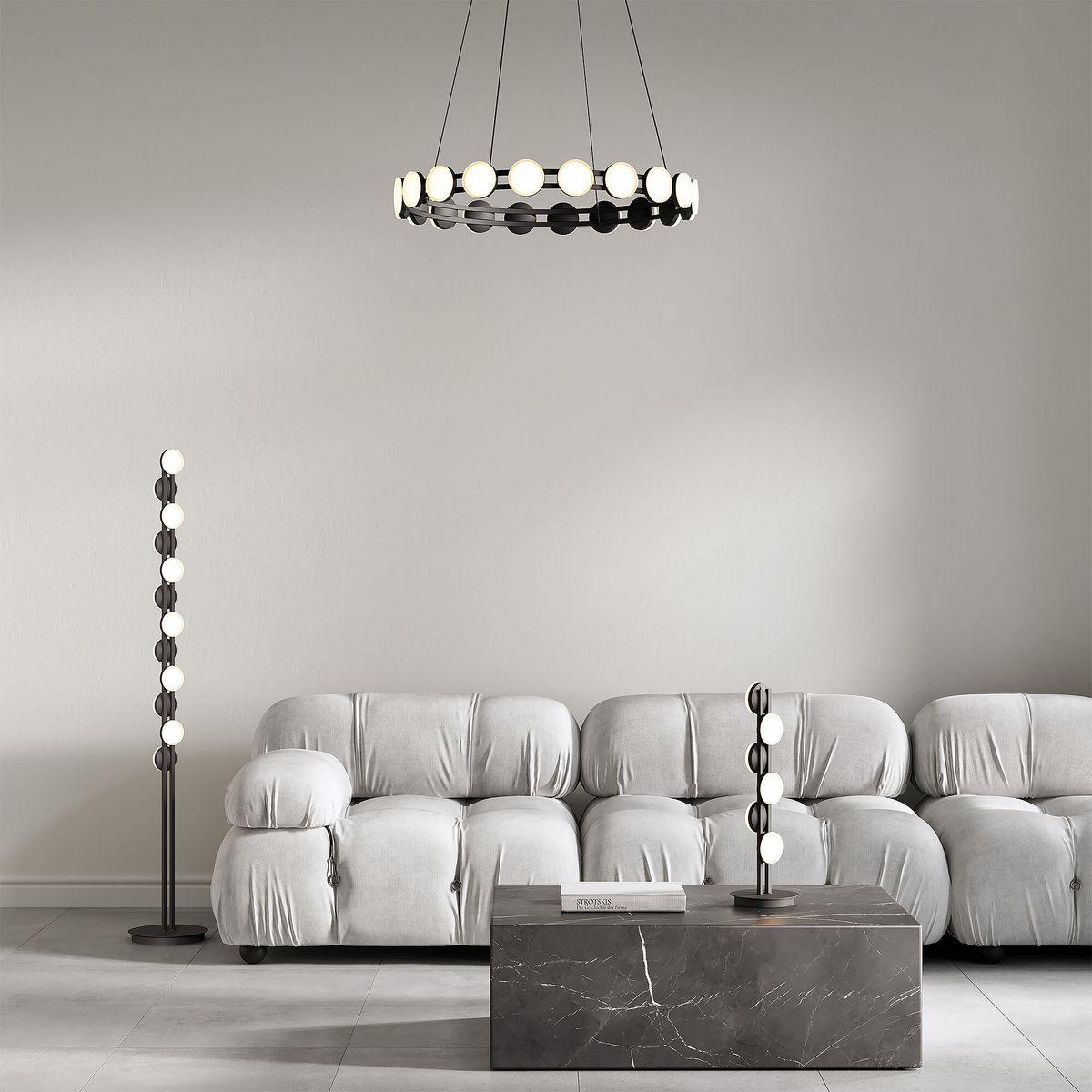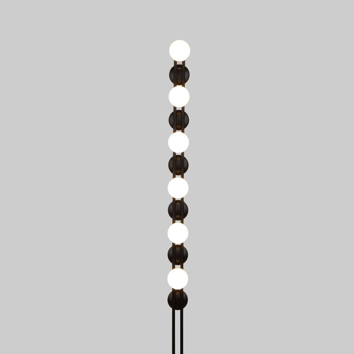 Для торшера необходима светодиодных ламп 34 W и цоколем LED. Лампы приобретаются отдельно. Габариты изделия: высота – 1370 мм, диаметр – 220 мм.