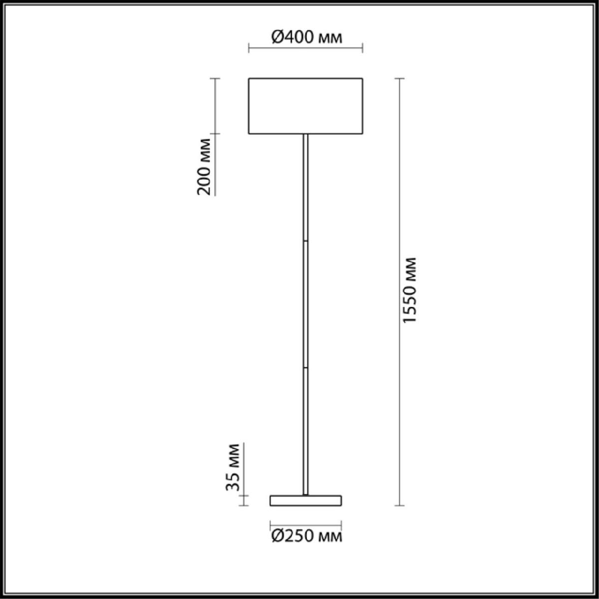 Для торшера необходима 2 лампы накаливания 60 W и цоколем E27. Лампы приобретаются отдельно. Габариты изделия: высота – 1550 мм, диаметр – 400 мм.