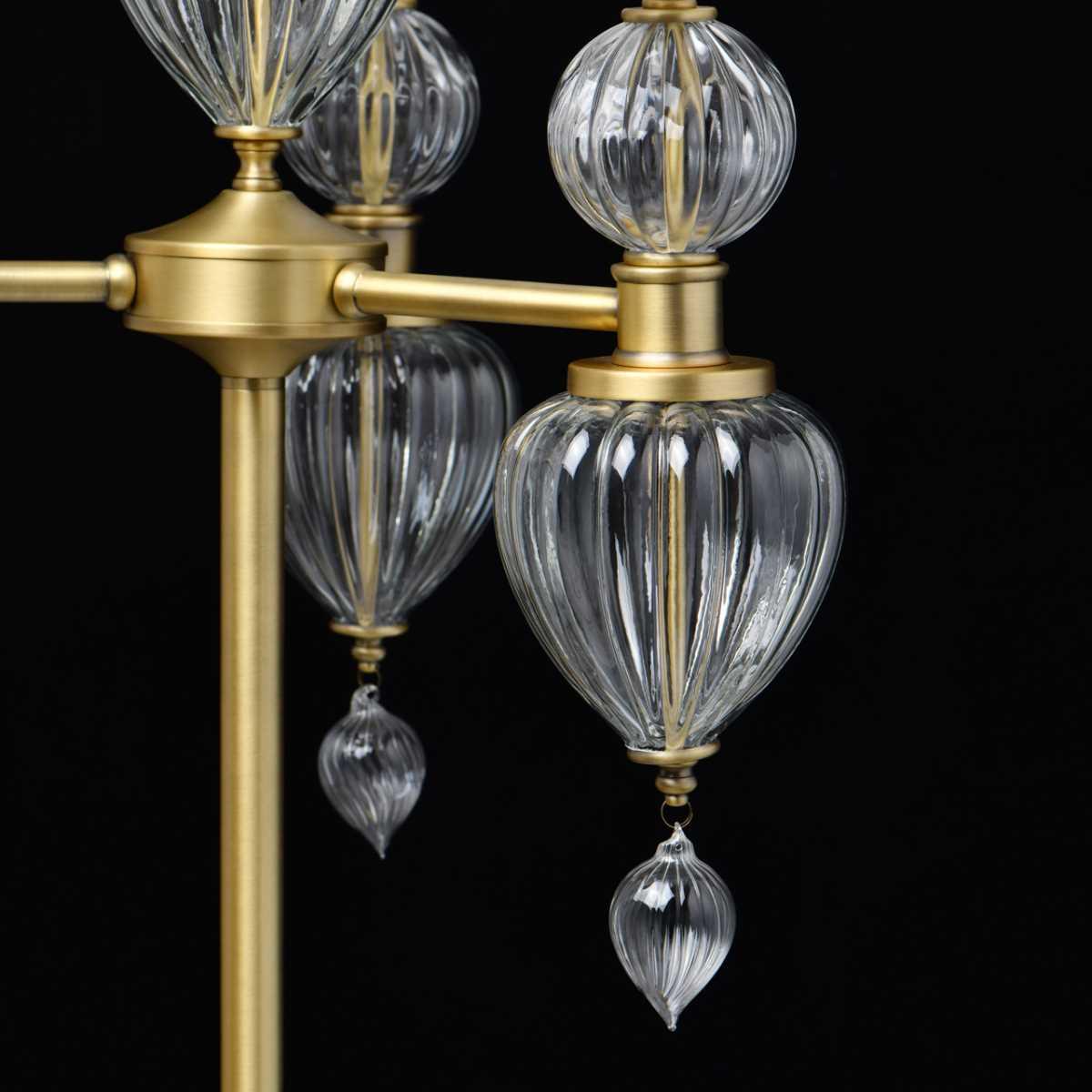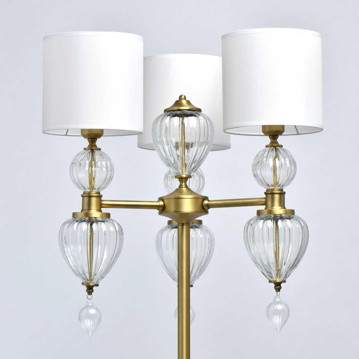 Для торшера необходима 3 лампы накаливания 40 W и цоколем E27. Лампы приобретаются отдельно. Габариты изделия: высота – 1560 мм, диаметр – 560 мм.