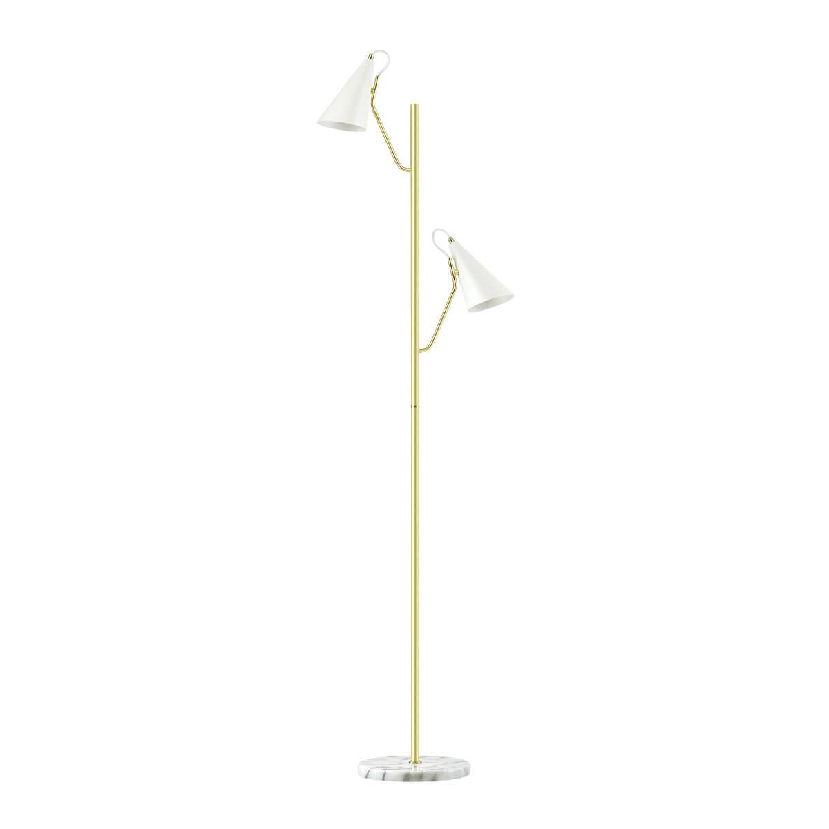 Торшер Lumion Watson 4439/2F от Итальянского бренда Lumion из коллекции Moderni отлично впишется в кухне в скандинавском стиле. Торшер выполнен из металлической основы с плафонами в форме конуса белого цвета.