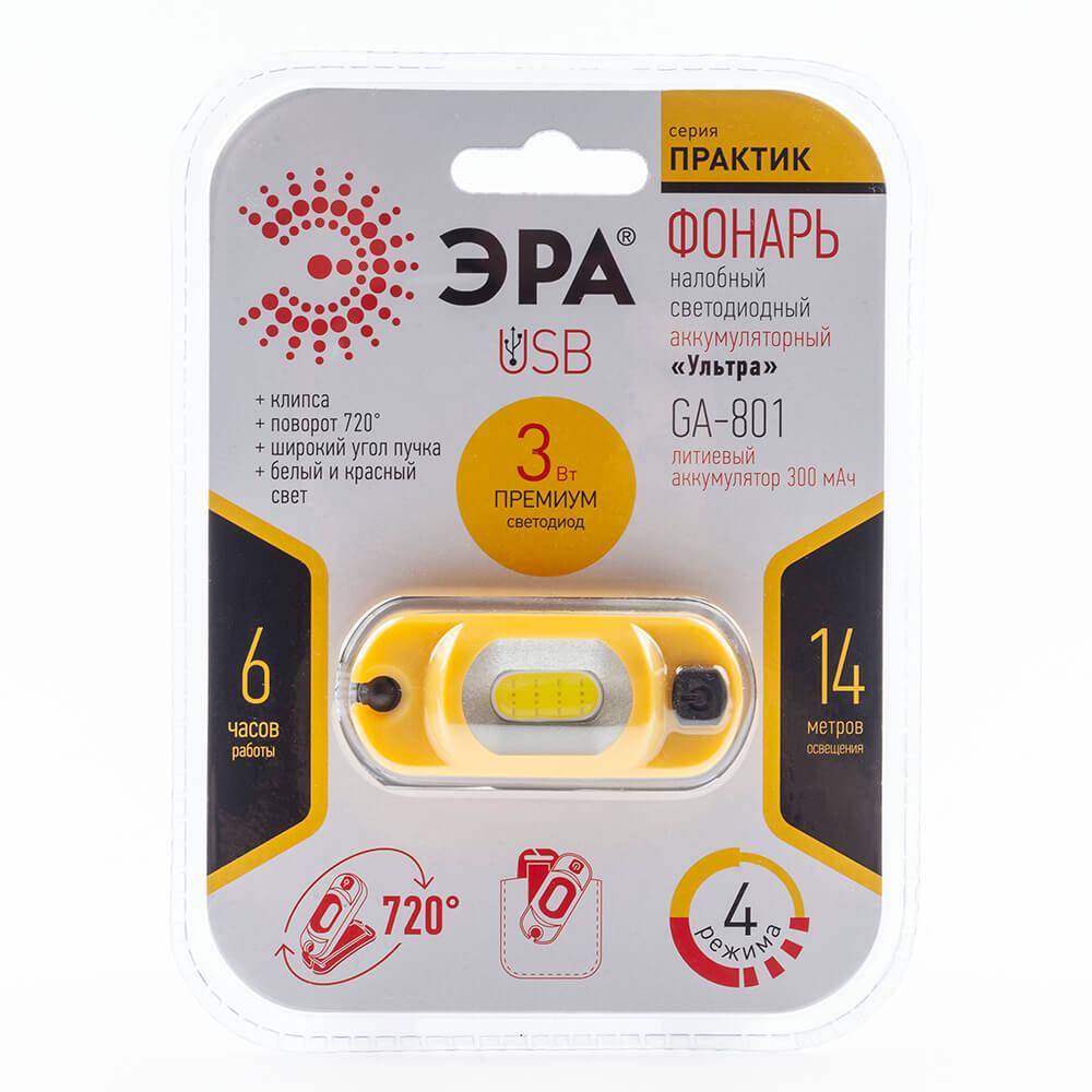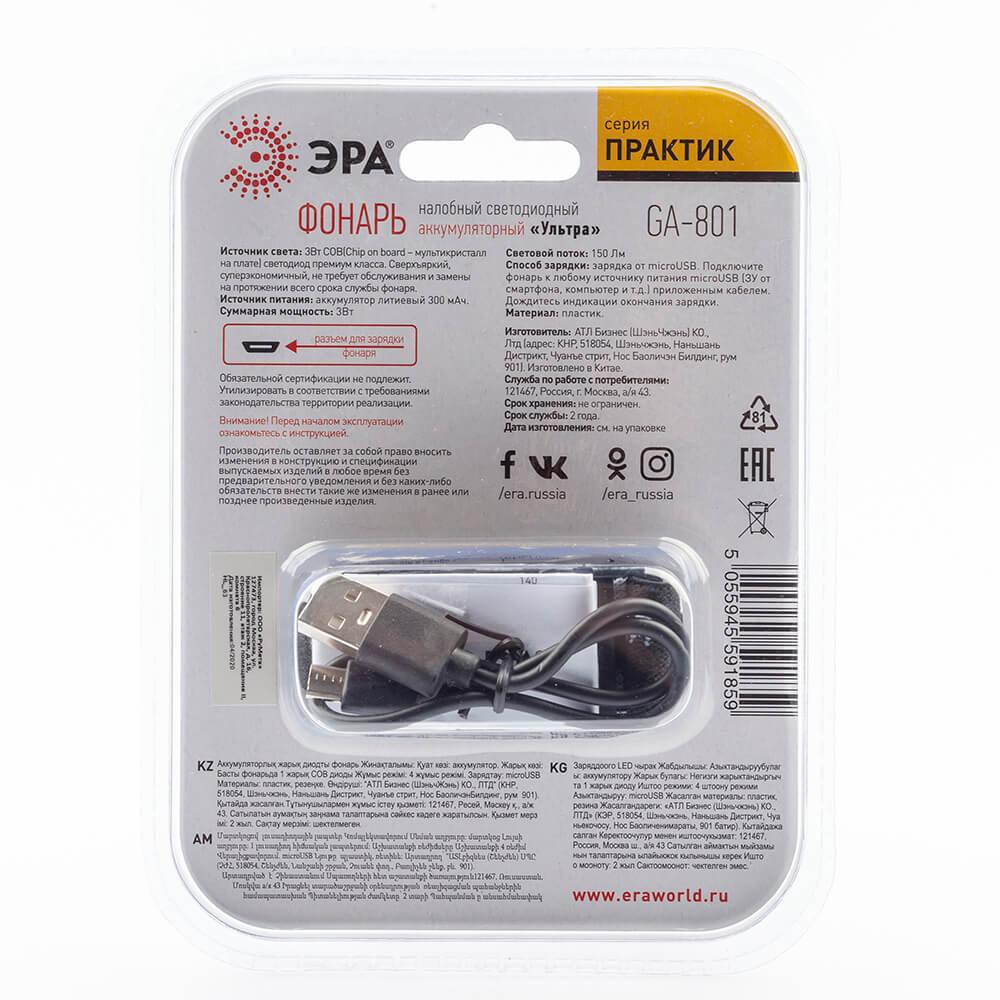 Налобный светодиодный фонарь ЭРА Практик аккумуляторный 150 лм GA-801 Б0030186