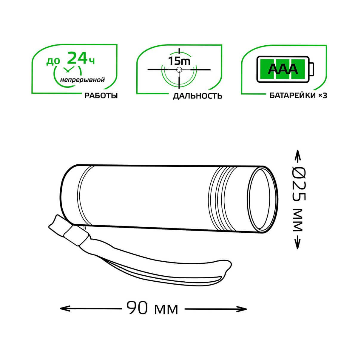 Ручной светодиодный фонарь Gauss от батареек 90х25 120 лм GF108