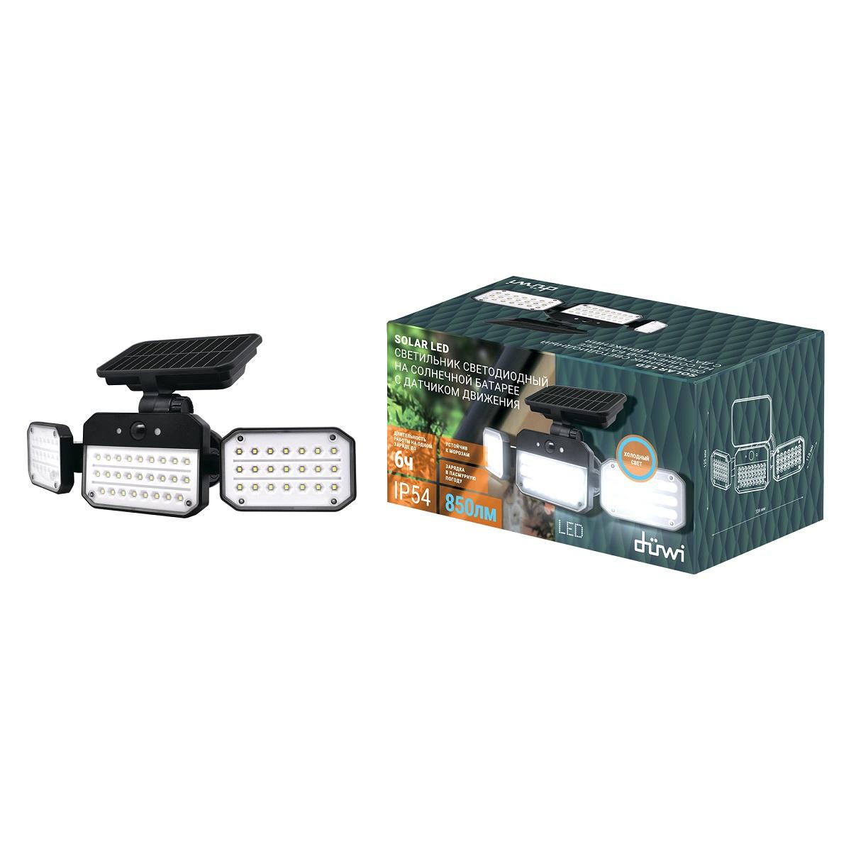 Архитектурный настенный светодиодный светильник Duwi Solar LED на солнеч. бат. с датчиком движ. 25028 9 от Китайского бренда из коллекции Solar LED выполненный в стиле модерн, осветит площадь до кв.м. Светильник имеет пластиковой корпус черного цвета с плафонами из пластика прозрачного цвета плафонами в форме - .