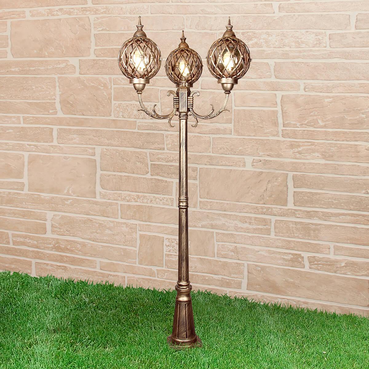 Садово-парковый светильник Elektrostandard Sirius a025304 от бренда из коллекции Sirius выполненный в стиле модерн, осветит площадь до кв.м. Светильник имеет металлической корпус залотого цвета с плафонами из стекла прозрачного цвета плафонами в форме - .