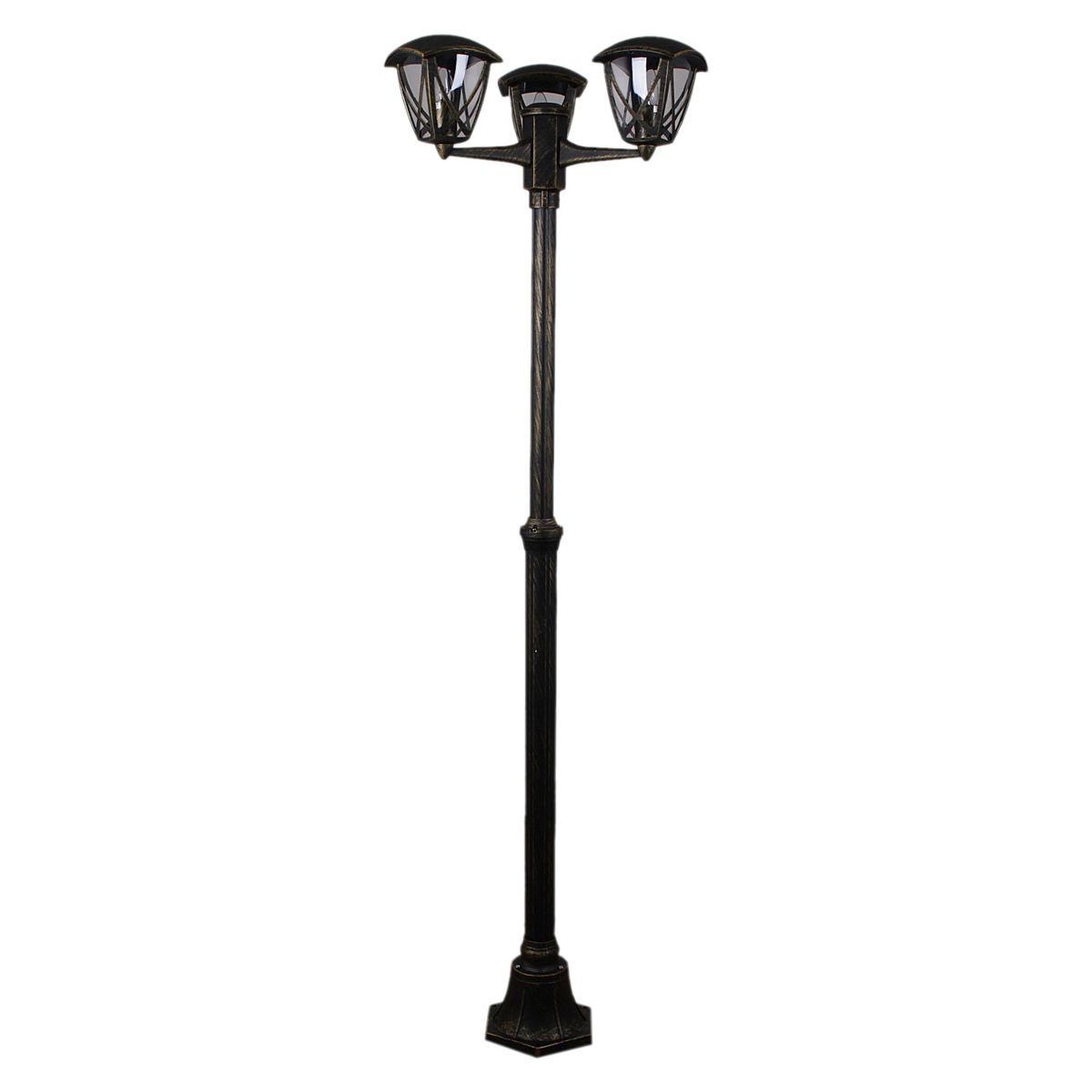 Садово-парковый светильник Reluce 08302-0.7-001SJ 2,2m BKG от Китайского бренда из коллекции 08302 выполненный в ретро стиле, осветит площадь до 18 кв.м. Светильник имеет металлической корпус с плафонами из прозрачного цвета плафонами в форме - .
