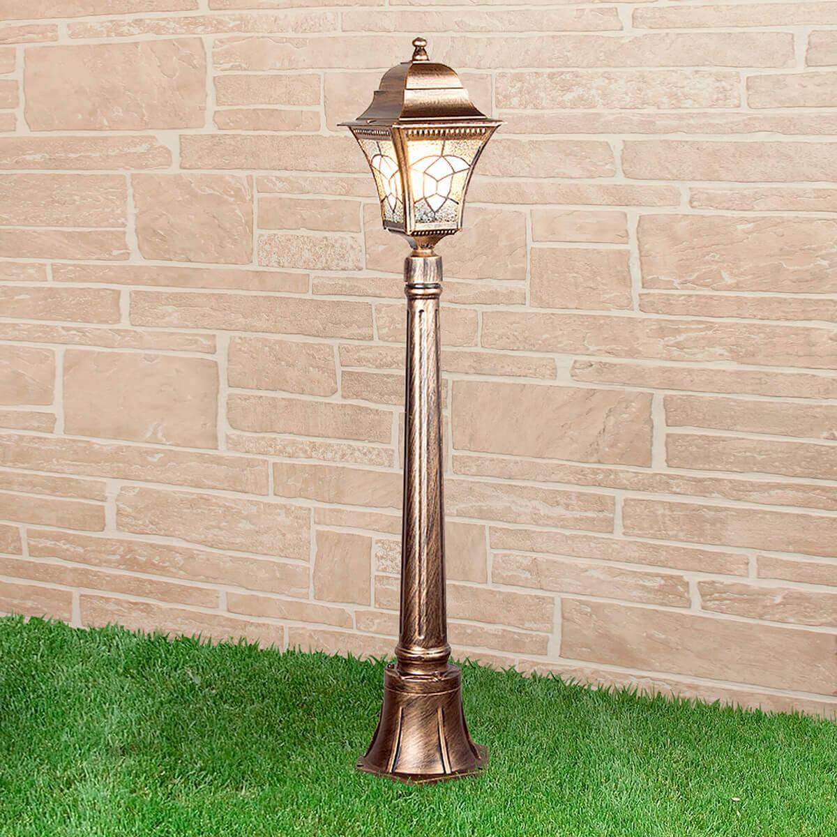 Уличный светильник Elektrostandard Altair F черное золото a025022 от Китайского бренда из коллекции Altair выполненный в классиком стиле, осветит площадь до кв.м. Светильник имеет металлической корпус с плафонами из стекла прозрачного цвета плафонами в форме - .