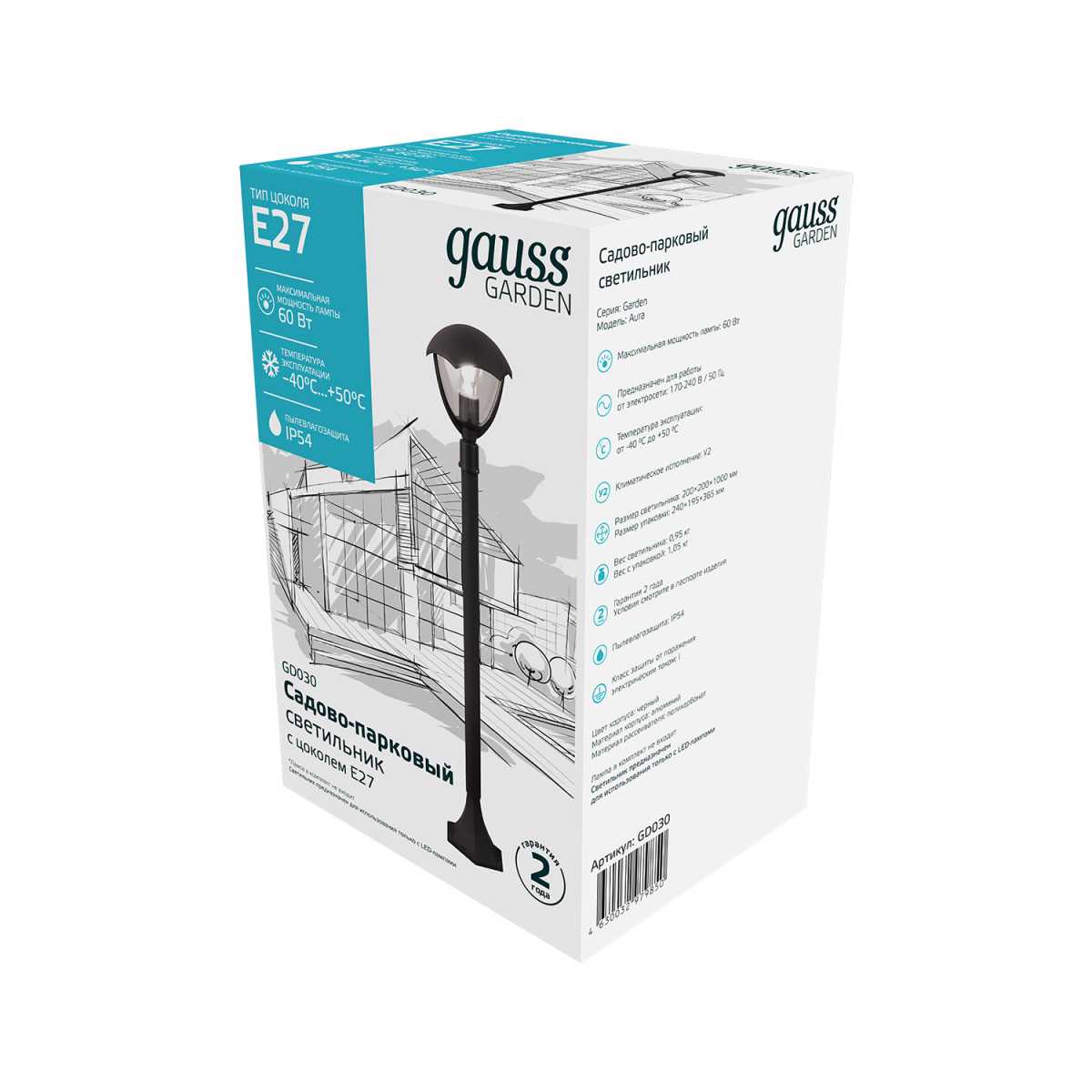 Уличный светильник Gauss Aura GD030 от Китайского бренда Gauss из коллекции Aura выполненный в стиле кантри, осветит площадь до 3 кв.м. Светильник имеет алюмииневой корпус черного цвета с плафонами из стекла прозрачного цвета плафонами в форме - овала.