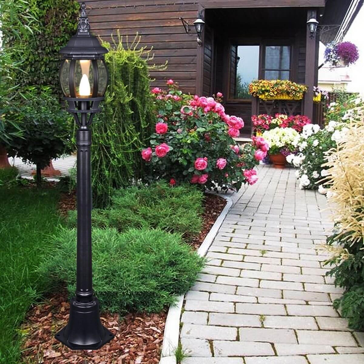 Уличный светильник Reluce 08012-0.7-001SL 0.8M BK от Китайского бренда из коллекции 08012 выполненный в классиком стиле, осветит площадь до кв.м. Светильник имеет металлической корпус черного цвета с плафонами из стекла плафонами в форме - .