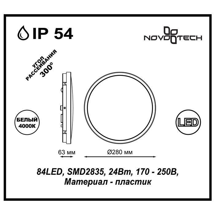 Для светильника необходима светодиодных ламп 24 W и цоколем LED. Лампы приобретаются отдельно. Габариты изделия: высота – 63 мм