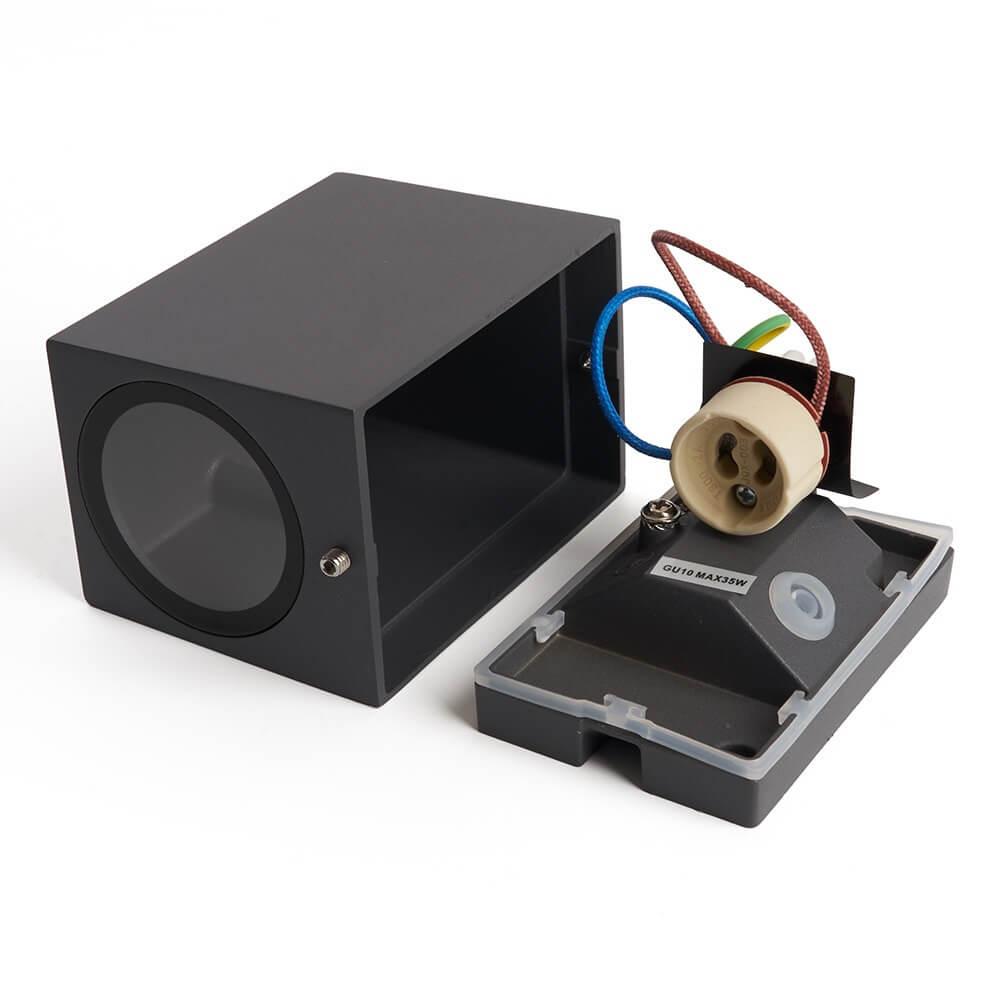 Для светильника необходима 1 галогеновая лампа 35 W и цоколем GU10. Лампы приобретаются отдельно. Габариты изделия: высота – 100 мм
