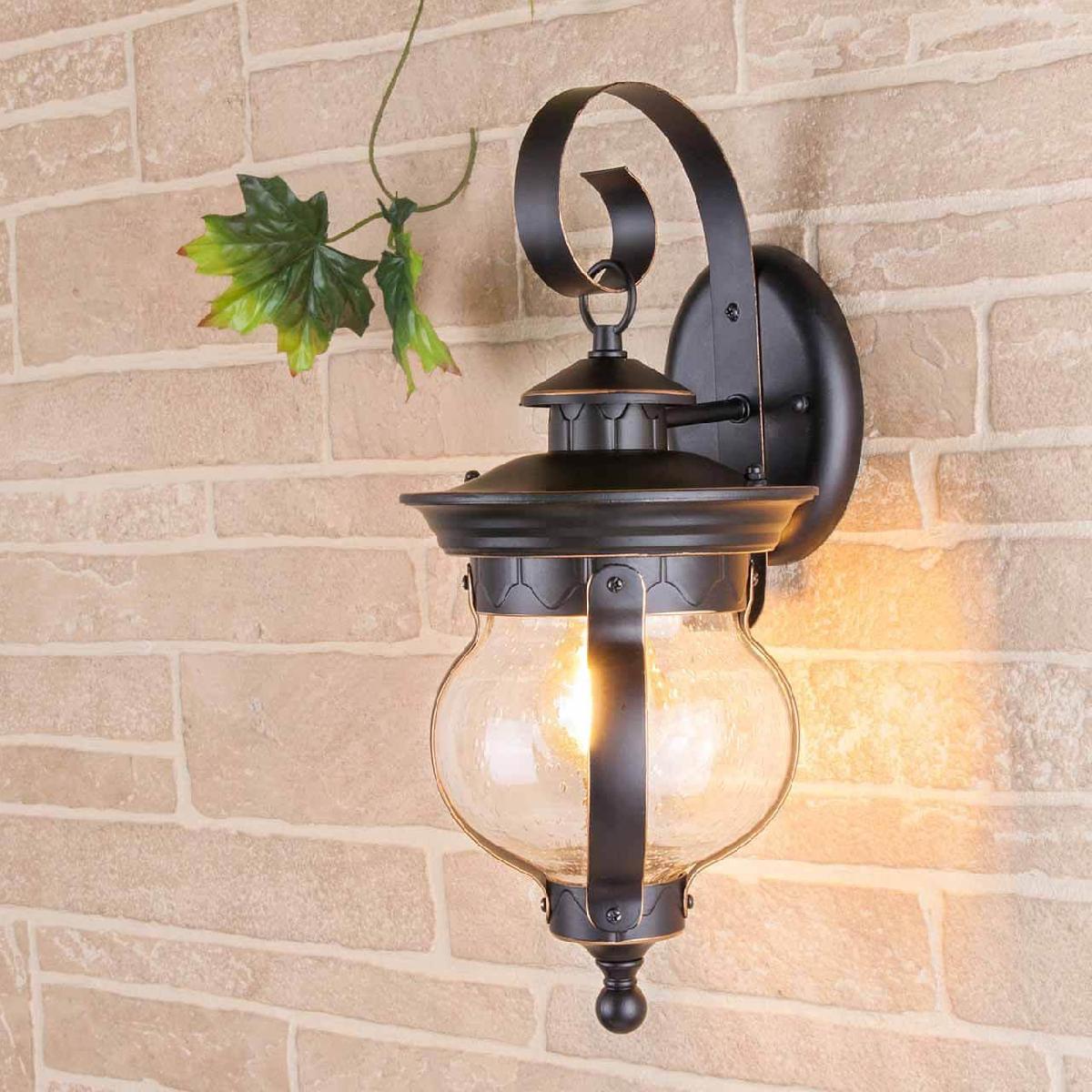 Уличный настенный светильник Elektrostandard Barrel D черное золото GL 1025D a040564 от Китайского бренда из коллекции Barrel выполненный в ретро стиле, осветит площадь до 3,3 кв.м. Светильник имеет алюмииневой корпус черного цвета с плафонами из стекла прозрачного цвета плафонами в форме - .