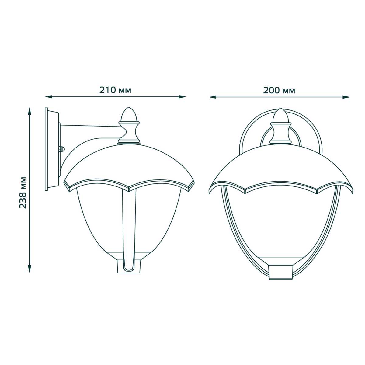 Для светильника необходима 1 лампа накаливания 60 W и цоколем E27. Лампы приобретаются отдельно. Габариты изделия: высота – 238 мм