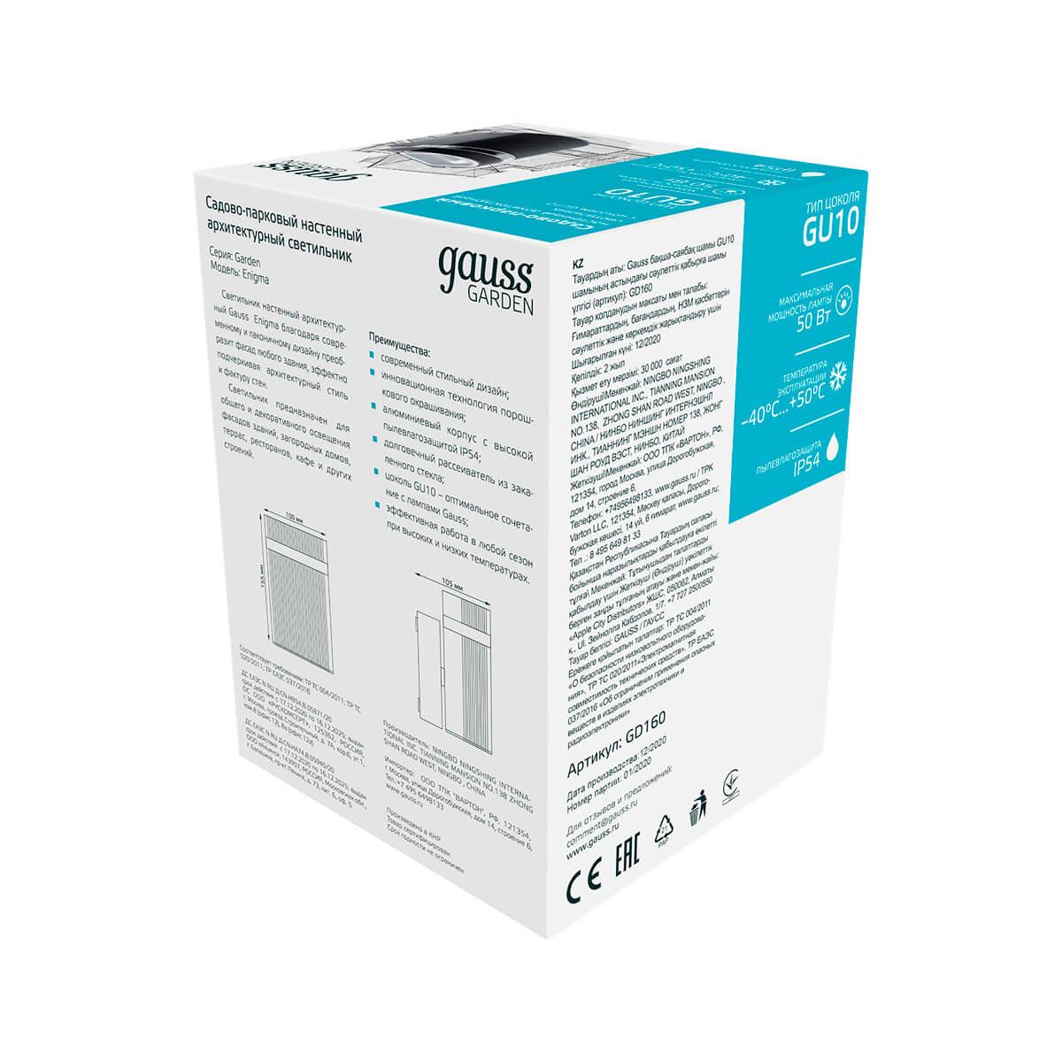 Уличный настенный светильник Gauss Electra GD160 от Китайского бренда из коллекции Electra выполненный в современном стиле, осветит площадь до 2 кв.м. Светильник имеет алюмииневой корпус черного цвета с плафонами из алюминия черного цвета плафонами в форме - .