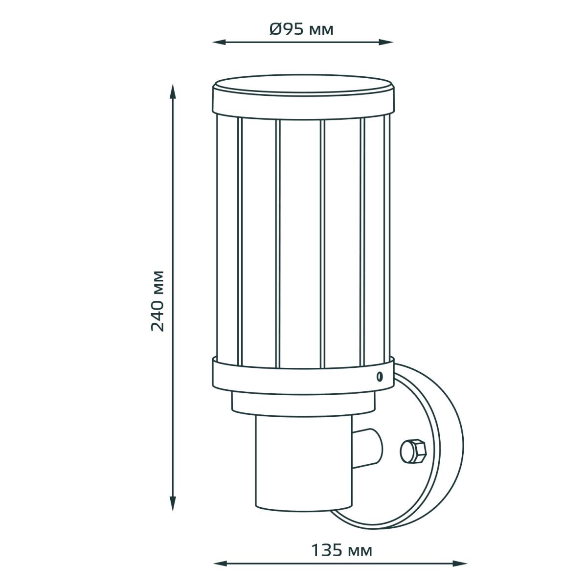 Для светильника необходима 1 лампа накаливания 60 W и цоколем E27. Лампы приобретаются отдельно. Габариты изделия: высота – 240 мм