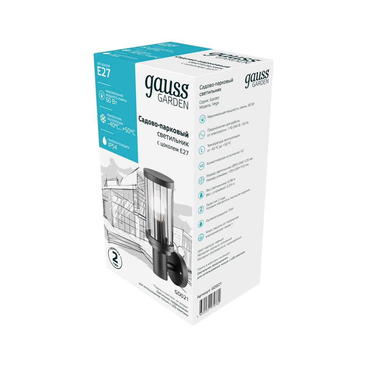 Уличный настенный светильник Gauss Vega GD021