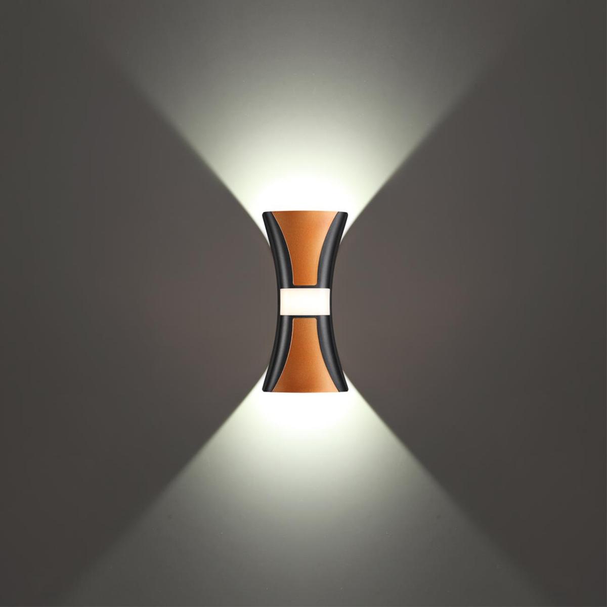 Уличный настенный светодиодный светильник Novotech Street Calle 358936 от Китайского бренда из коллекции Calle выполненный в хай-тек стиле, осветит площадь до 5 кв.м. Светильник имеет алюмииневой корпус залотого цвета с плафонами из алюминия черного цвета плафонами в форме - .
