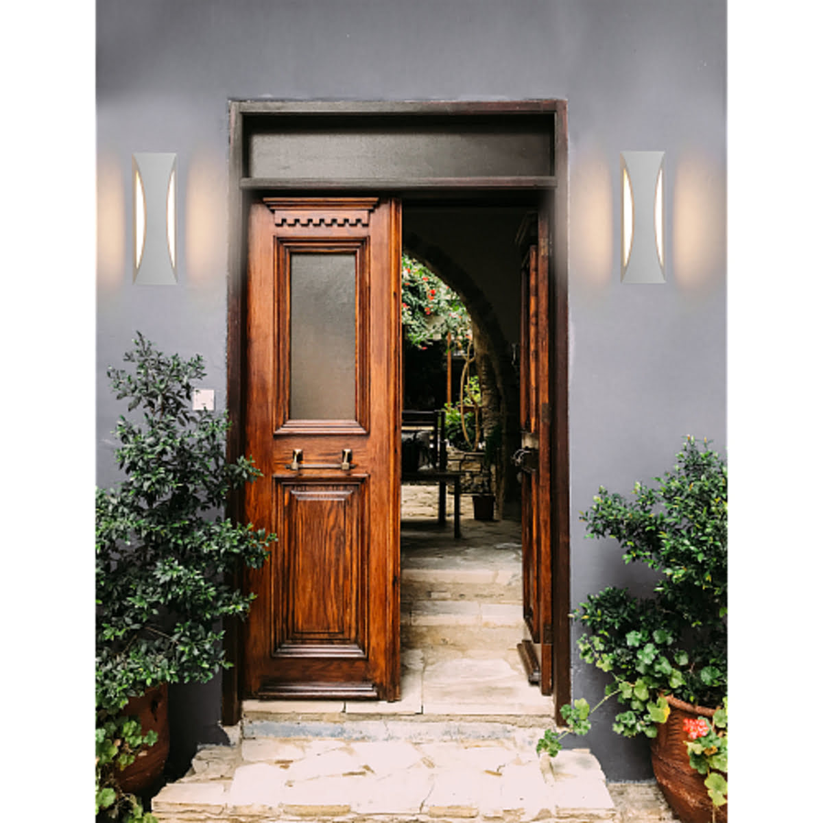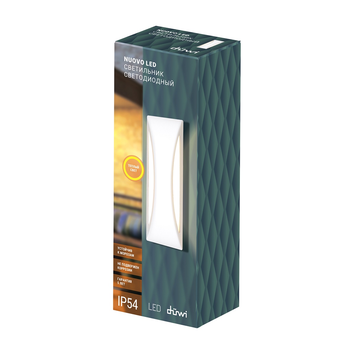 Уличный настенный светодиодный светильник Duwi Nuovo LED 24336 6 от Китайского бренда из коллекции Nuovo LED выполненный в стиле модерн, осветит площадь до кв.м. Светильник имеет алюмииневой корпус белого цвета с плафонами из алюминия белого цвета плафонами в форме - .