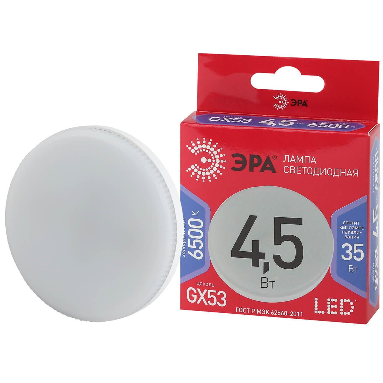 Лампа светодиодная ЭРА GX53 4,5W 6500K матовая GX-4,5W-865-GX53 R Б0045329 отРоссийского бренда ЭРА с цоколем GX53 и имеет форму - Таблетка .