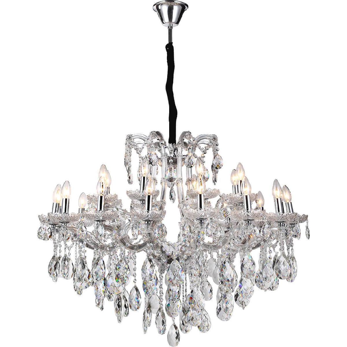 Производитель светильника рекомендует для устройства 24 ламп накаливания с цоколем E14 и мощностью 60 W, что позволит осветить помещение площадью 80 кв.м. Габариты изделия: высота – 850 мм, диаметр – 1050 мм.