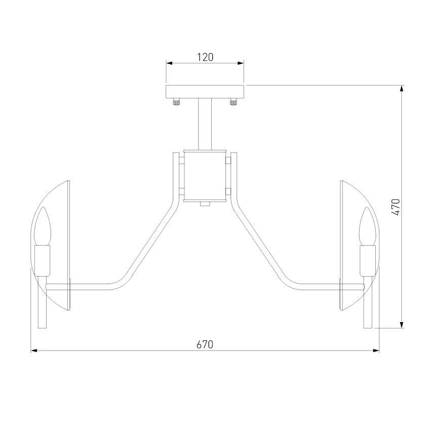 Производитель светильника рекомендует для устройства 6 ламп накаливания с цоколем E14 и мощностью 40 W, что позволит осветить помещение площадью 10 кв.м. Габариты изделия: высота – 470 мм, диаметр – 670 мм.