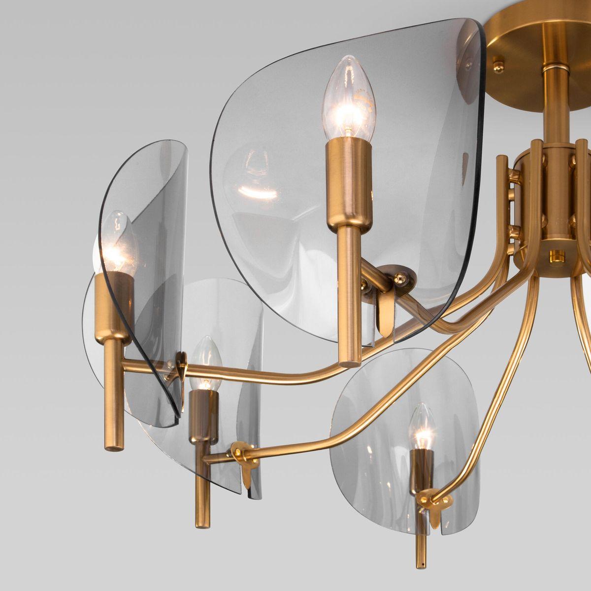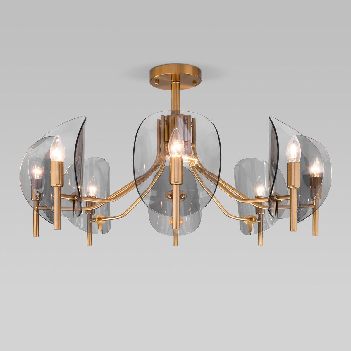 Потолочная люстра Eurosvet Rocco 60135/8 латунь от Китайского бренда из коллекции Rocco будет удачно смотреться в гостиной в стиле кантри. Светильник выполнен из стекла с плафонами в форме дымчатого цвета.