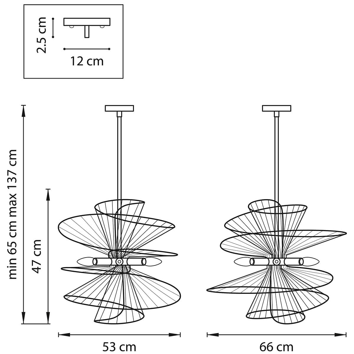 Производитель светильника рекомендует для устройства 6 ламп накаливания с цоколем E14 и мощностью 40 W, что позволит осветить помещение площадью 13 кв.м. Габариты изделия: высота – 470 мм, диаметр – мм.