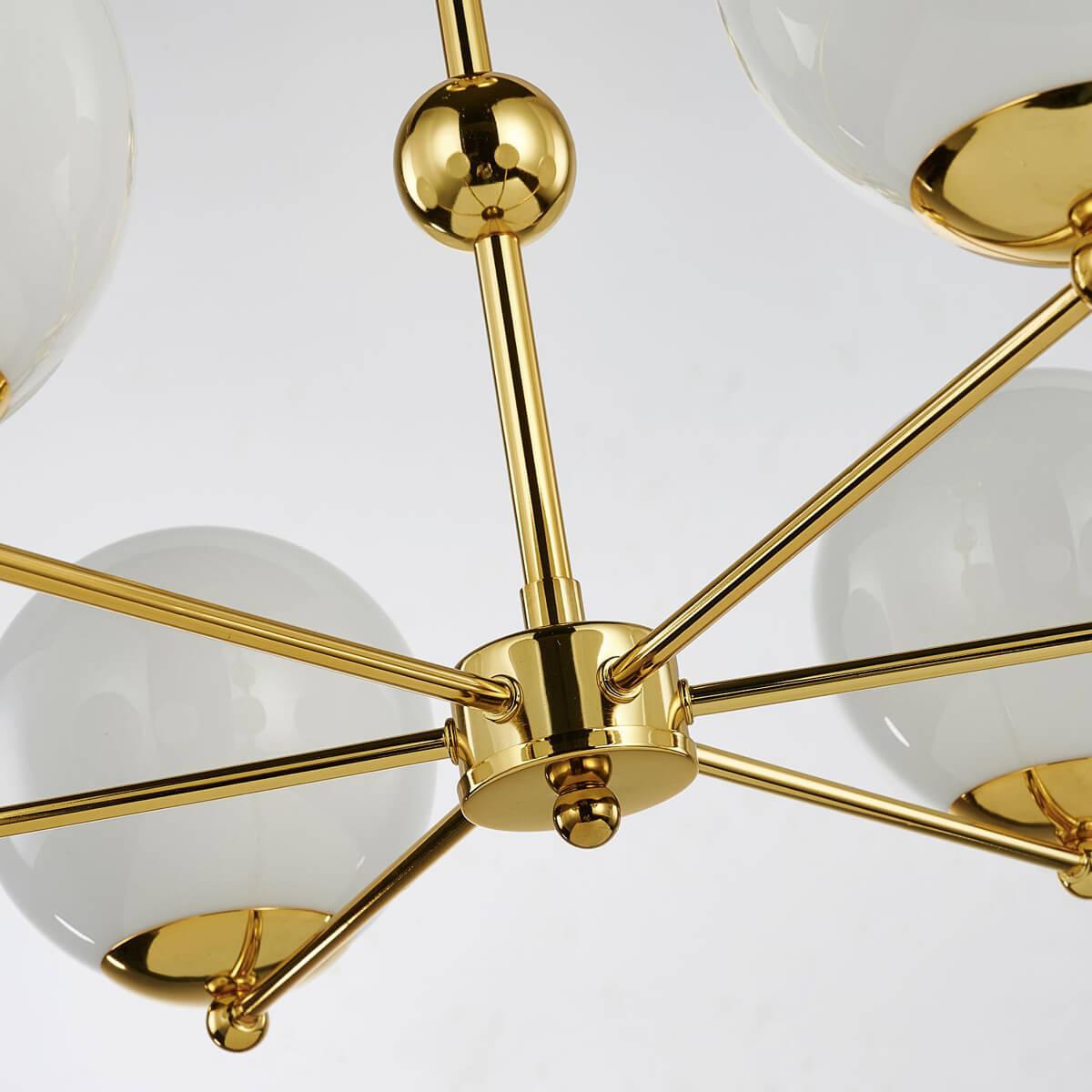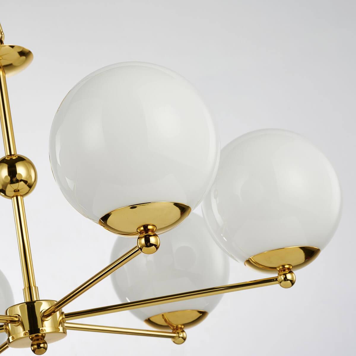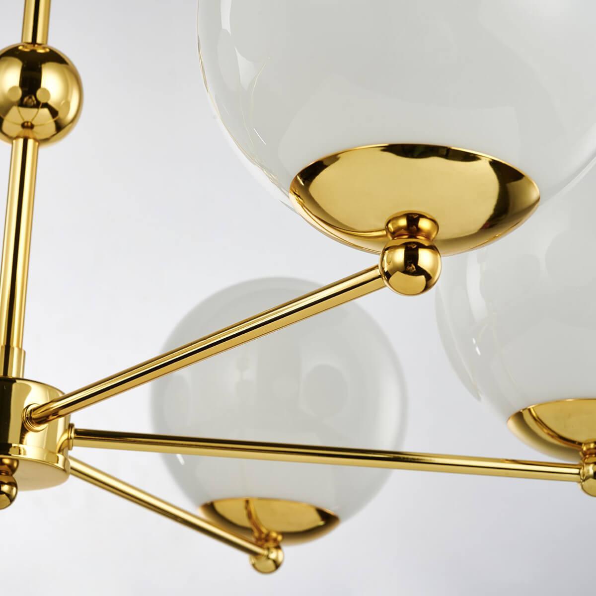 Подвесная люстра Favourite Undine 2811-6P от бренда Favourite из коллекции Undine будет удачно смотреться в кафе и ресторанах в современном стиле. Светильник выполнен из стекла с плафонами в форме шара белого цвета.