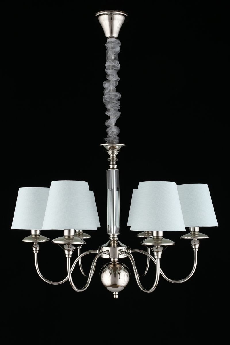Производитель светильника рекомендует для устройства 6 ламп накаливания с цоколем E14 и мощностью 40 W, что позволит осветить помещение площадью 13 кв.м. Габариты изделия: высота – 700 мм, диаметр – 650 мм.