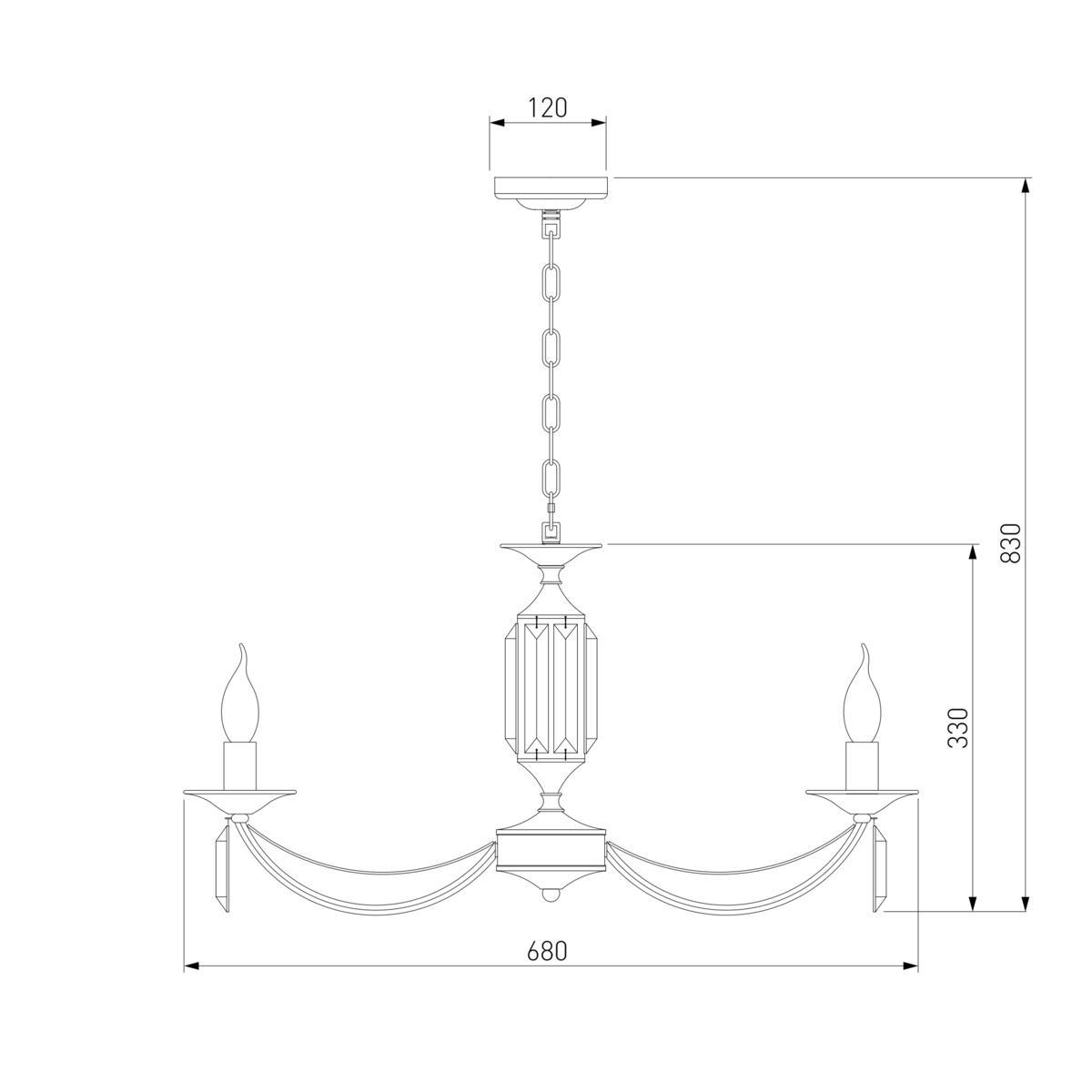 Производитель светильника рекомендует для устройства 8 ламп накаливания с цоколем E14 и мощностью 60 W, что позволит осветить помещение площадью кв.м. Габариты изделия: высота – 330 мм, диаметр – 680 мм.