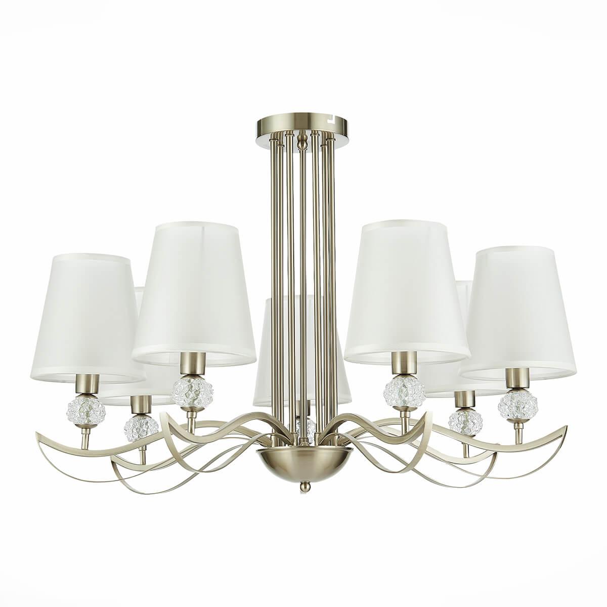 Подвесная люстра Evoluce Bergamo SLE111203-07 от бренда из коллекции Bergamo будет удачно смотреться в больших залах в классиком стиле. Светильник выполнен из ткани с плафонами в форме белого цвета.