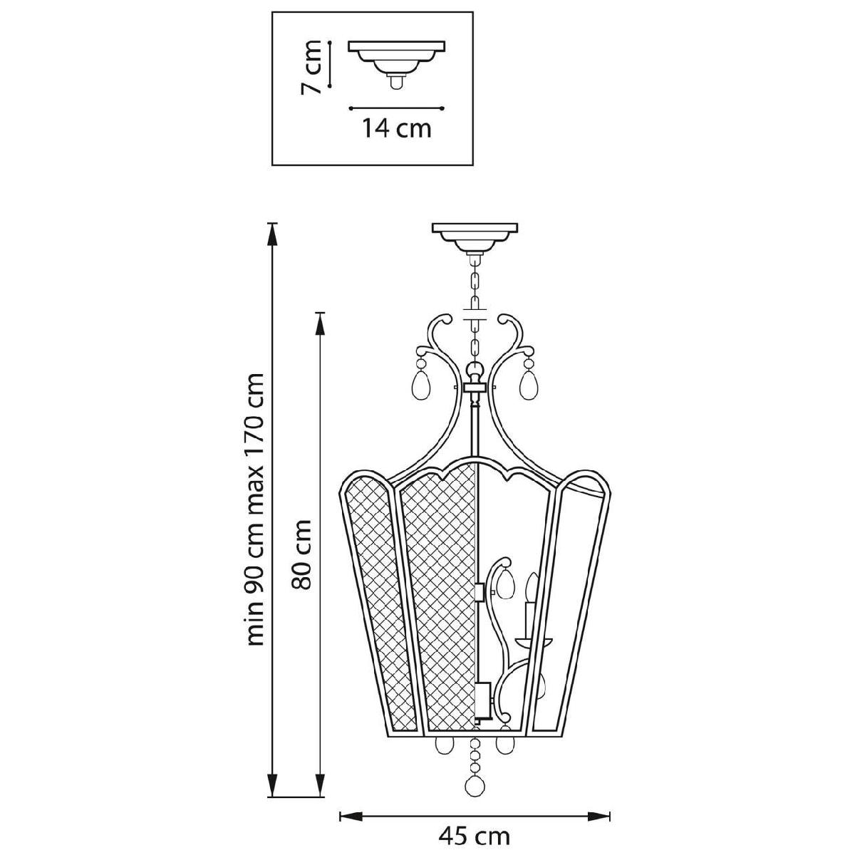 Производитель светильника рекомендует для устройства 5 ламп накаливания с цоколем E14 и мощностью 40 W, что позволит осветить помещение площадью кв.м. Габариты изделия: высота – 800 мм, диаметр – 450 мм.