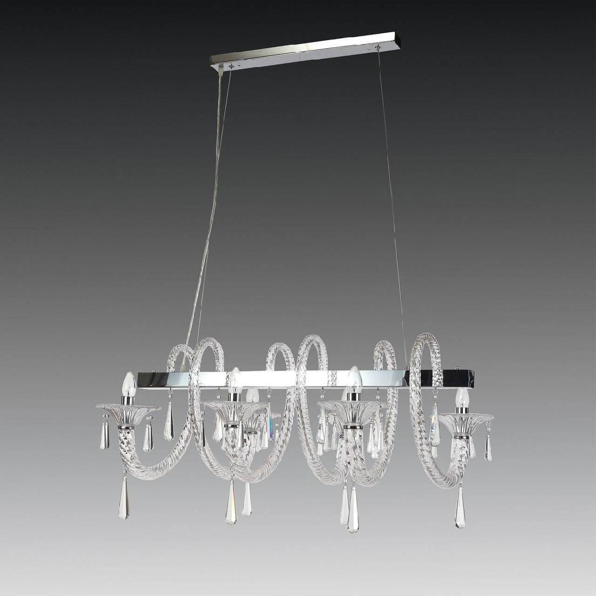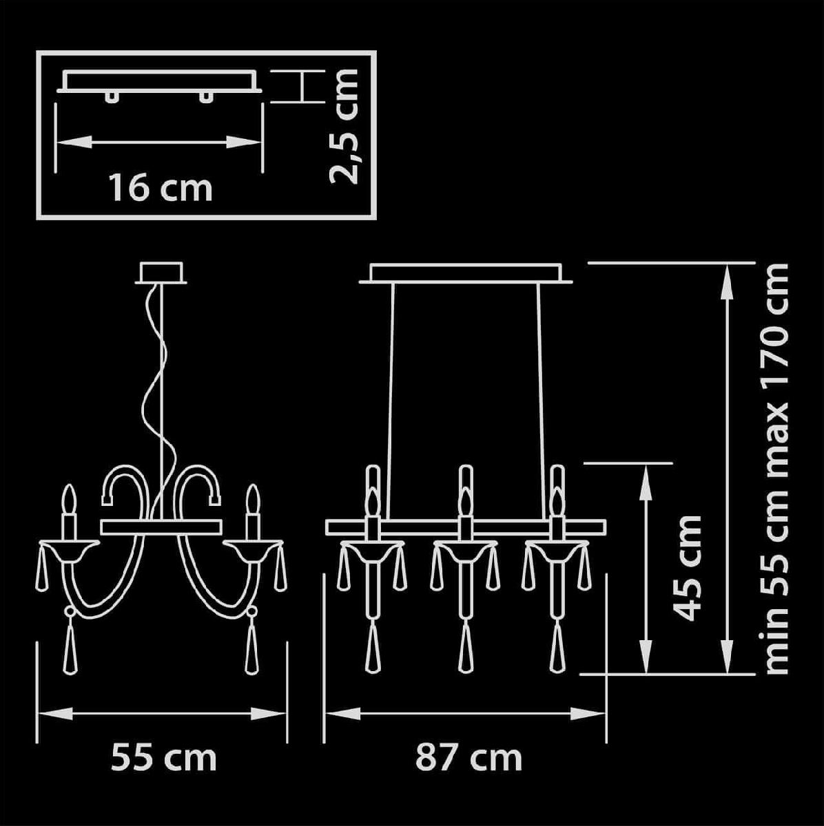 Производитель светильника рекомендует для устройства 6 ламп накаливания с цоколем E14 и мощностью 40 W, что позволит осветить помещение площадью 13,3 кв.м. Габариты изделия: высота – 1700 мм, диаметр – мм.