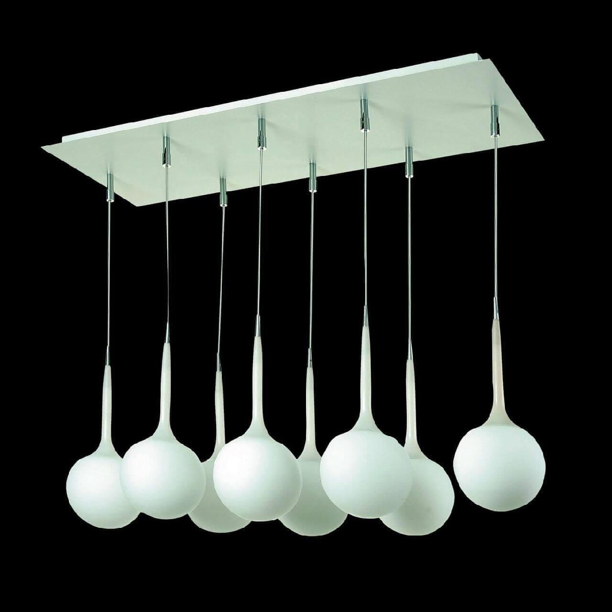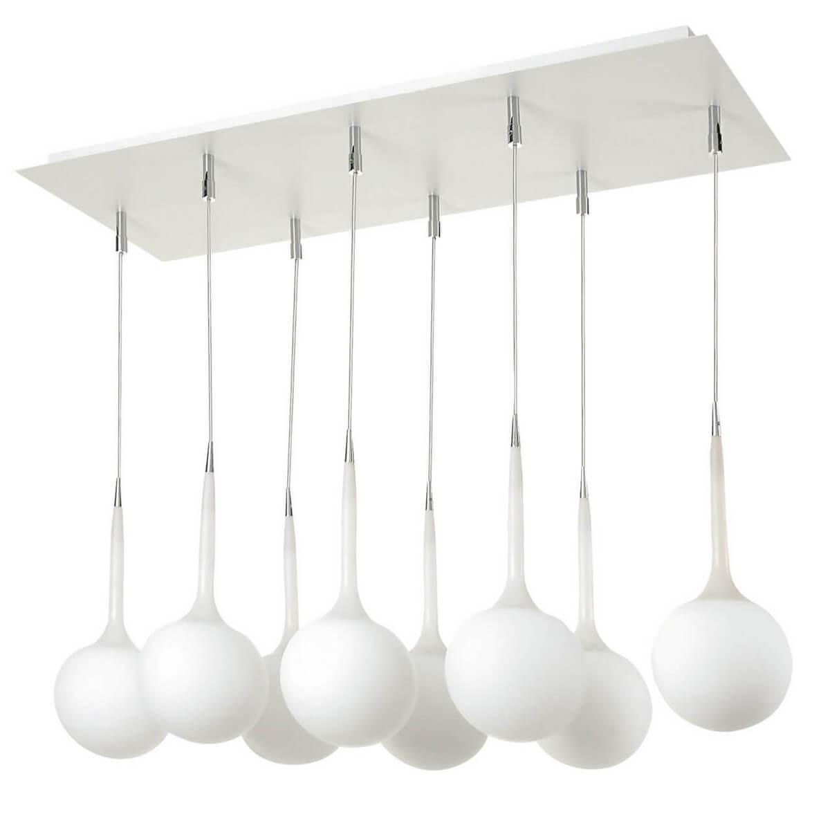 Подвесная люстра Lightstar Simple Light 803080 от Китайского бренда Lightstar из коллекции Globo будет удачно смотреться в гостиной в стиле Арт-деко. Светильник выполнен из стекла с плафонами в форме круга белого цвета.