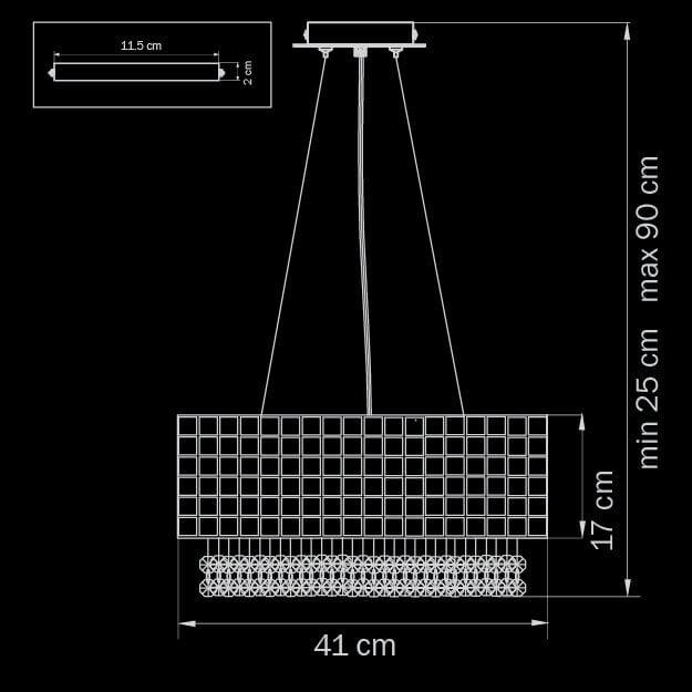 Производитель светильника рекомендует для устройства 6 галогеновых ламп с цоколем G9 и мощностью 40 W, что позволит осветить помещение площадью 13,3 кв.м. Габариты изделия: высота – 900 мм, диаметр – 410 мм.
