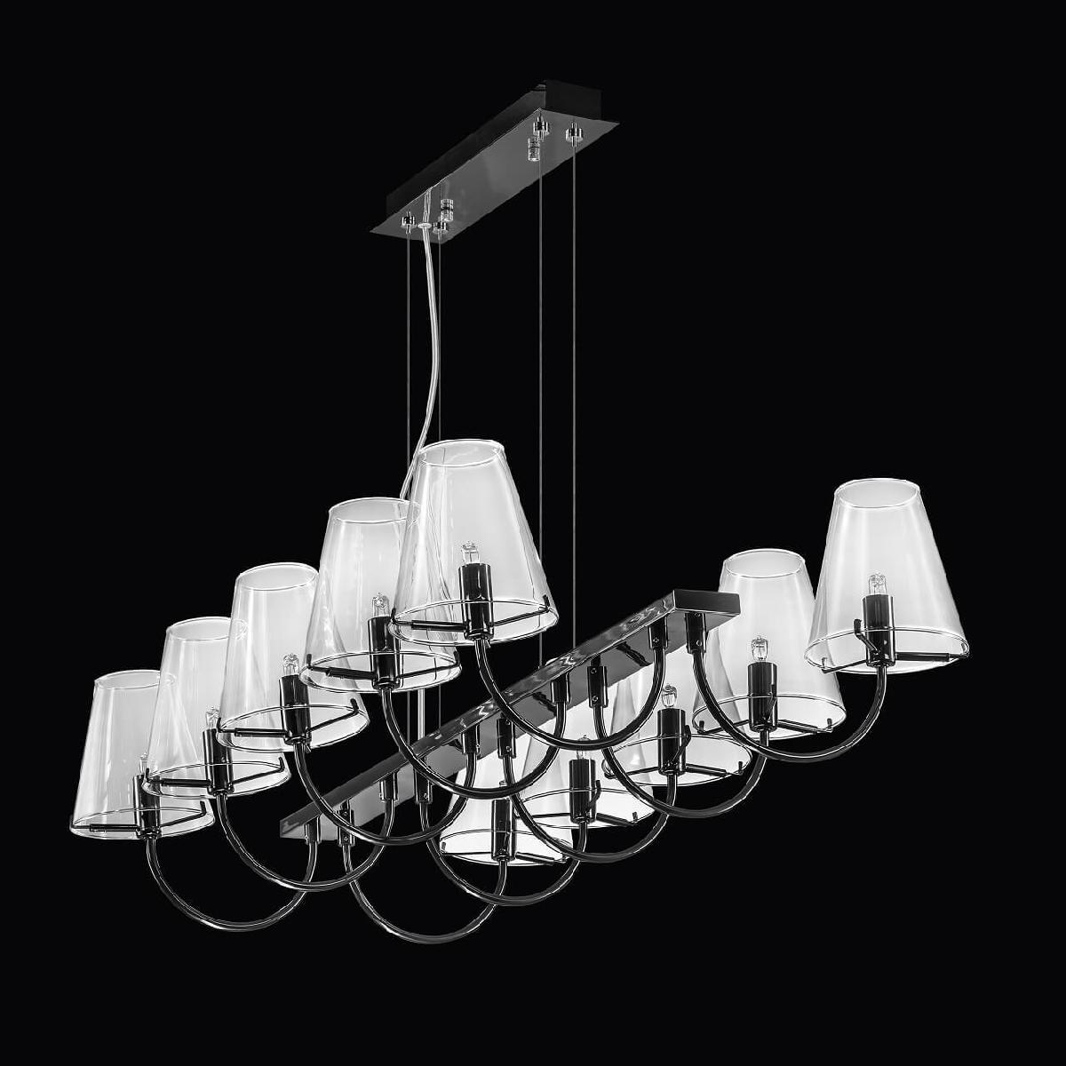 Производитель светильника рекомендует для устройства 10 галогеновых ламп с цоколем G9 и мощностью 40 W, что позволит осветить помещение площадью 22,2 кв.м. Габариты изделия: высота – 220 мм, диаметр – мм.