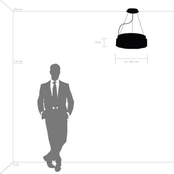 Производитель светильника рекомендует для устройства 12 светодиодных ламп с цоколем G9 и мощностью 6 W, что позволит осветить помещение площадью 36 кв.м. Габариты изделия: высота – 140 мм, диаметр – 465 мм.