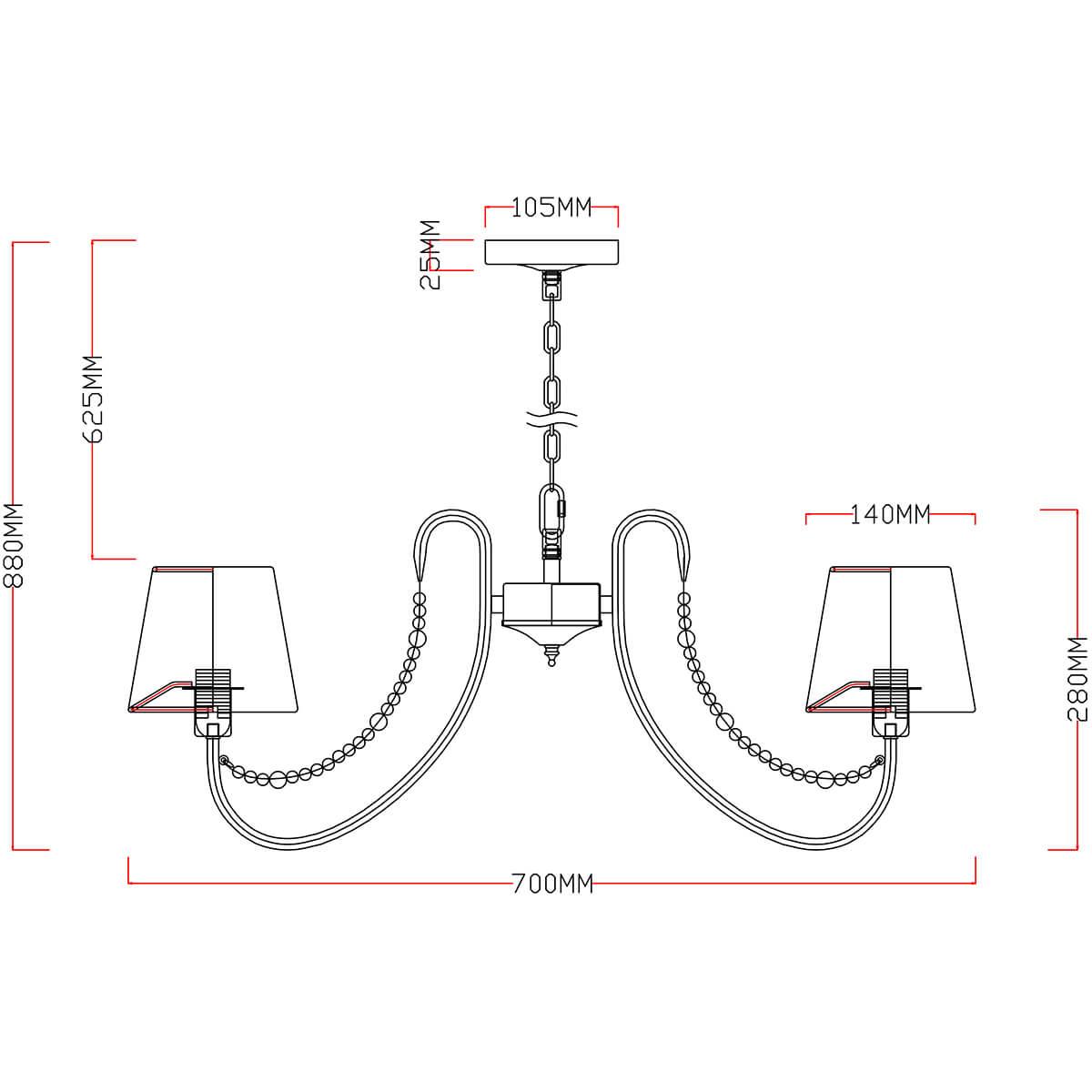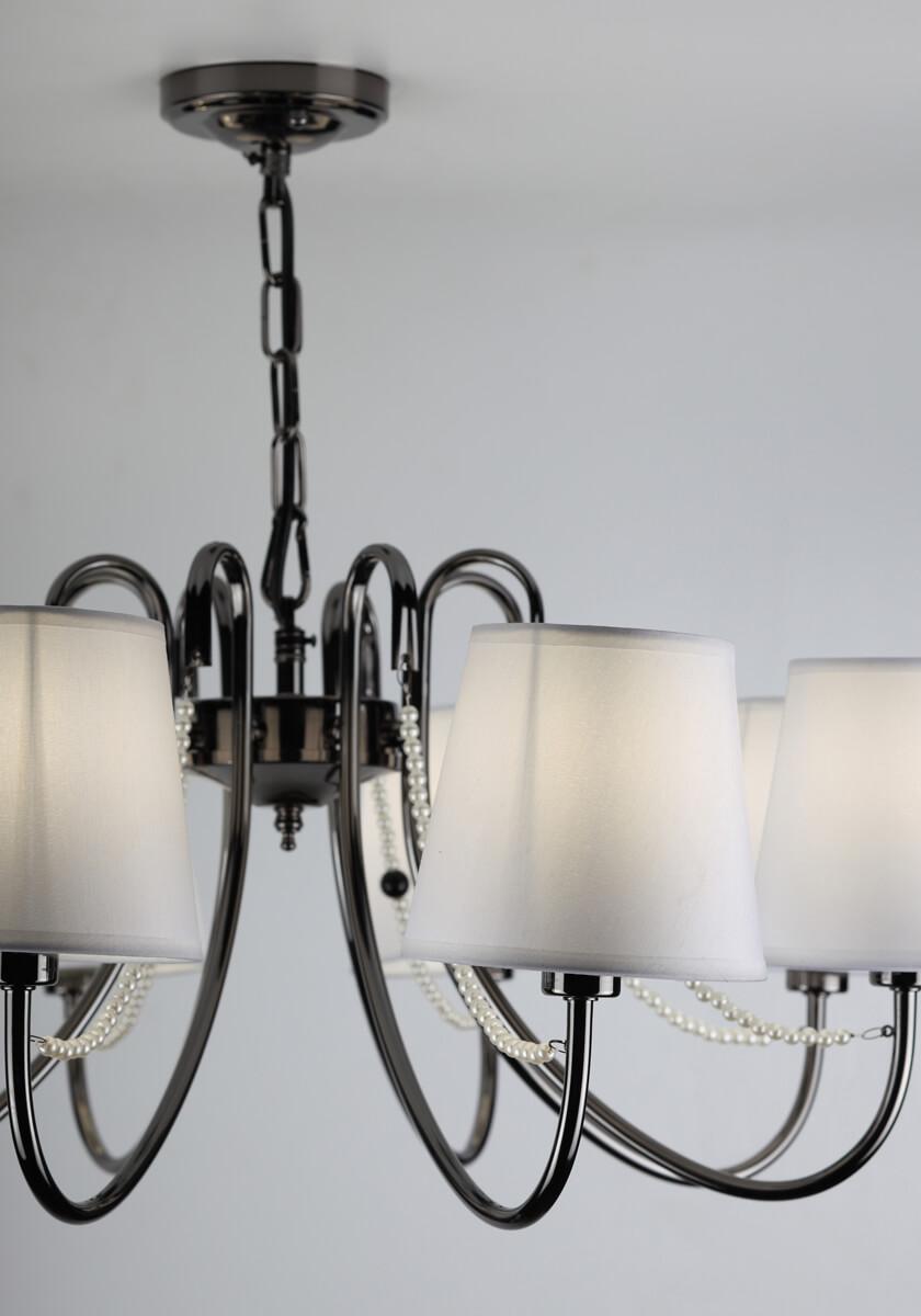 Производитель светильника рекомендует для устройства 8 ламп накаливания с цоколем E14 и мощностью 40 W, что позволит осветить помещение площадью 32 кв.м. Габариты изделия: высота – 280 мм, диаметр – 700 мм.