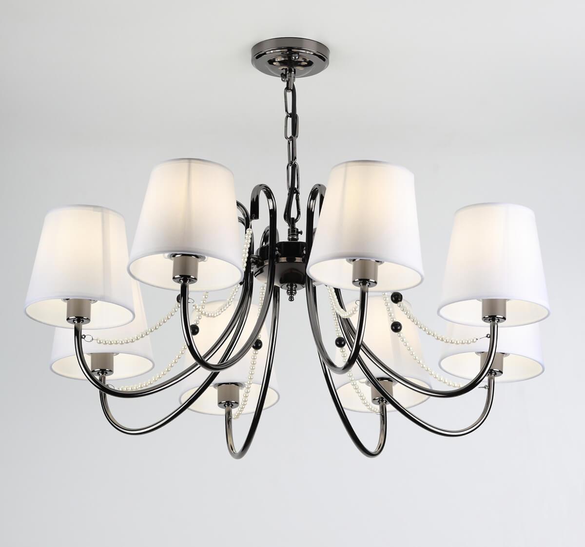 Подвесная люстра Rivoli Perla 2025-208 Б0038435 от Итальянского бренда Rivoli из коллекции Perla будет удачно смотреться в гостиной в классиком стиле. Светильник выполнен из ткани с плафонами в форме конуса белого цвета.