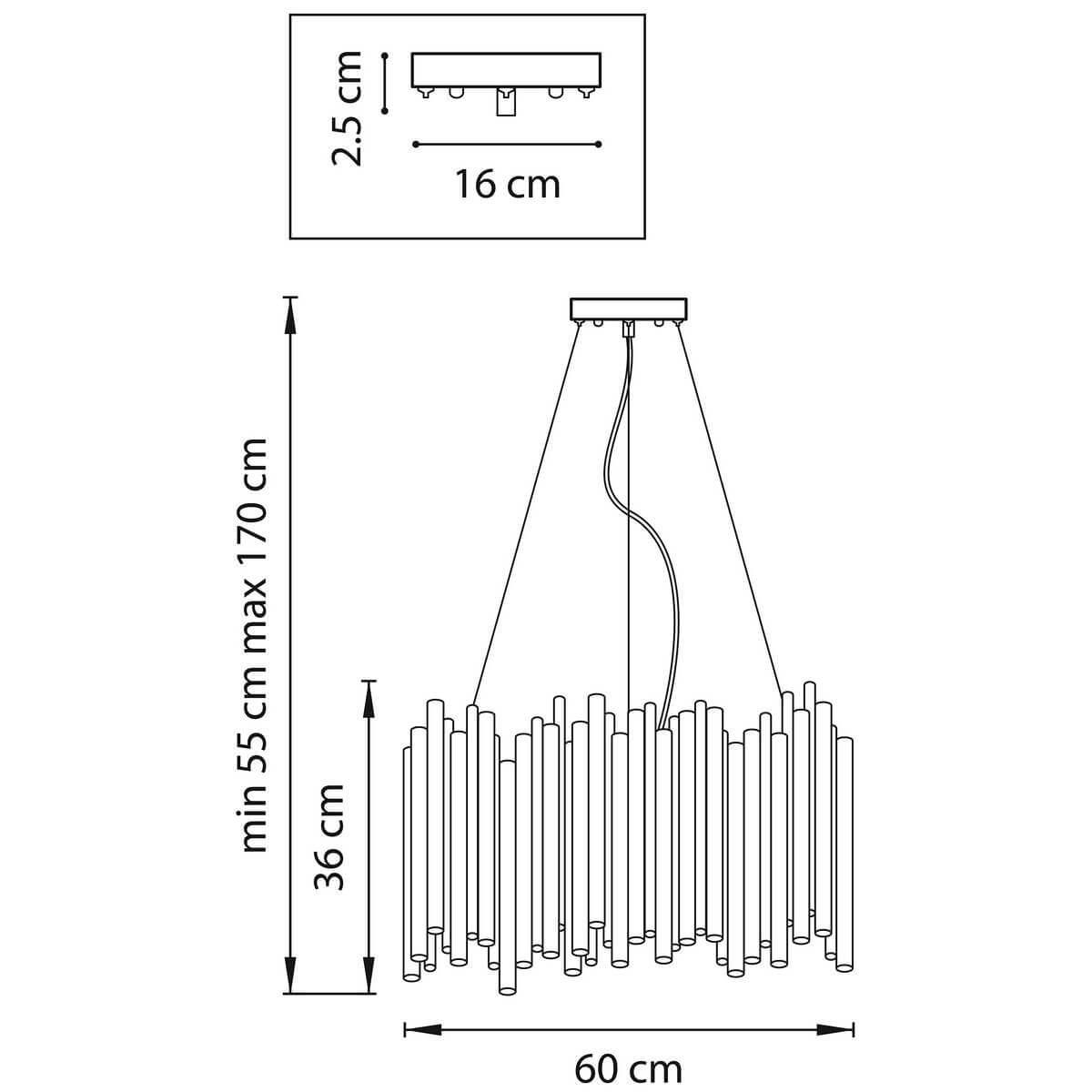Производитель светильника рекомендует для устройства 10 галогеновых ламп с цоколем G9 и мощностью 40 W, что позволит осветить помещение площадью кв.м. Габариты изделия: высота – 360 мм, диаметр – 600 мм.