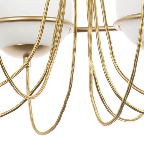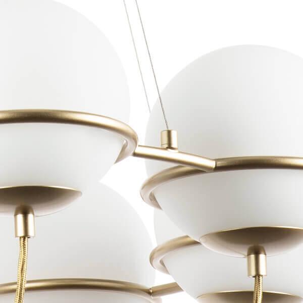 Производитель светильника рекомендует для устройства 8 ламп накаливания с цоколем E14 и мощностью 40 W, что позволит осветить помещение площадью 17,8 кв.м. Габариты изделия: высота – 400 мм, диаметр – 750 мм.