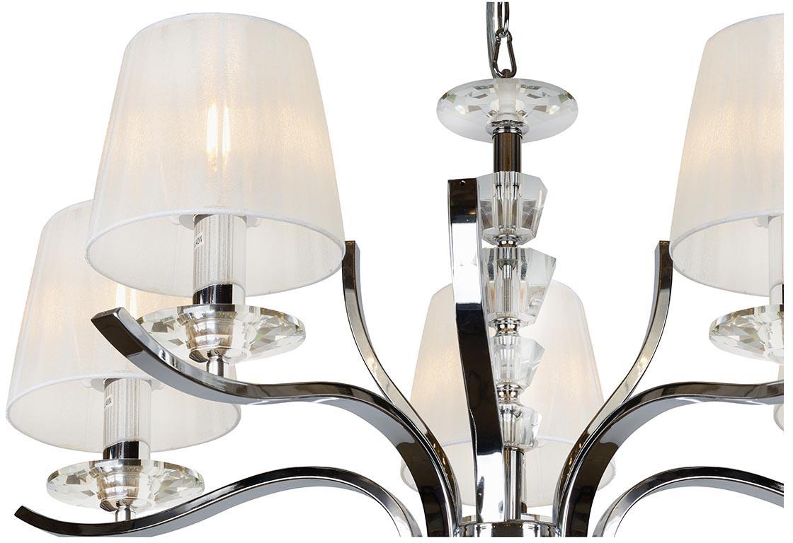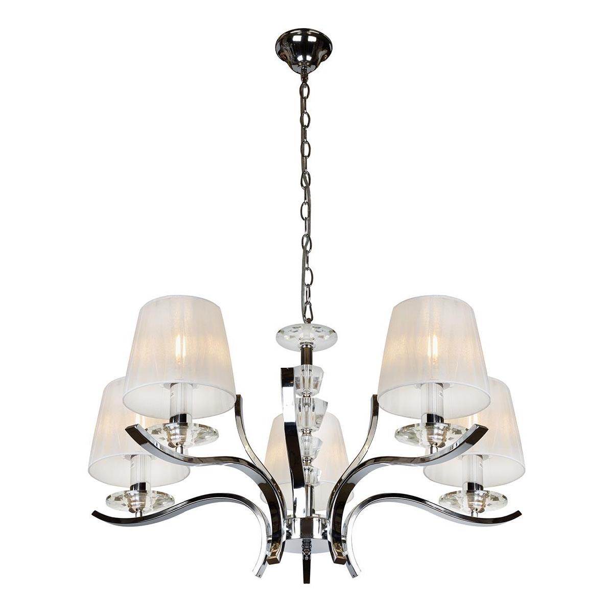 Подвесная люстра iLamp Omega RM5231/5CR от Китайского бренда iLamp из коллекции Omega будет удачно смотреться в спальни в стиле Арт-деко. Светильник выполнен из ткани с плафонами в форме конуса белого цвета.