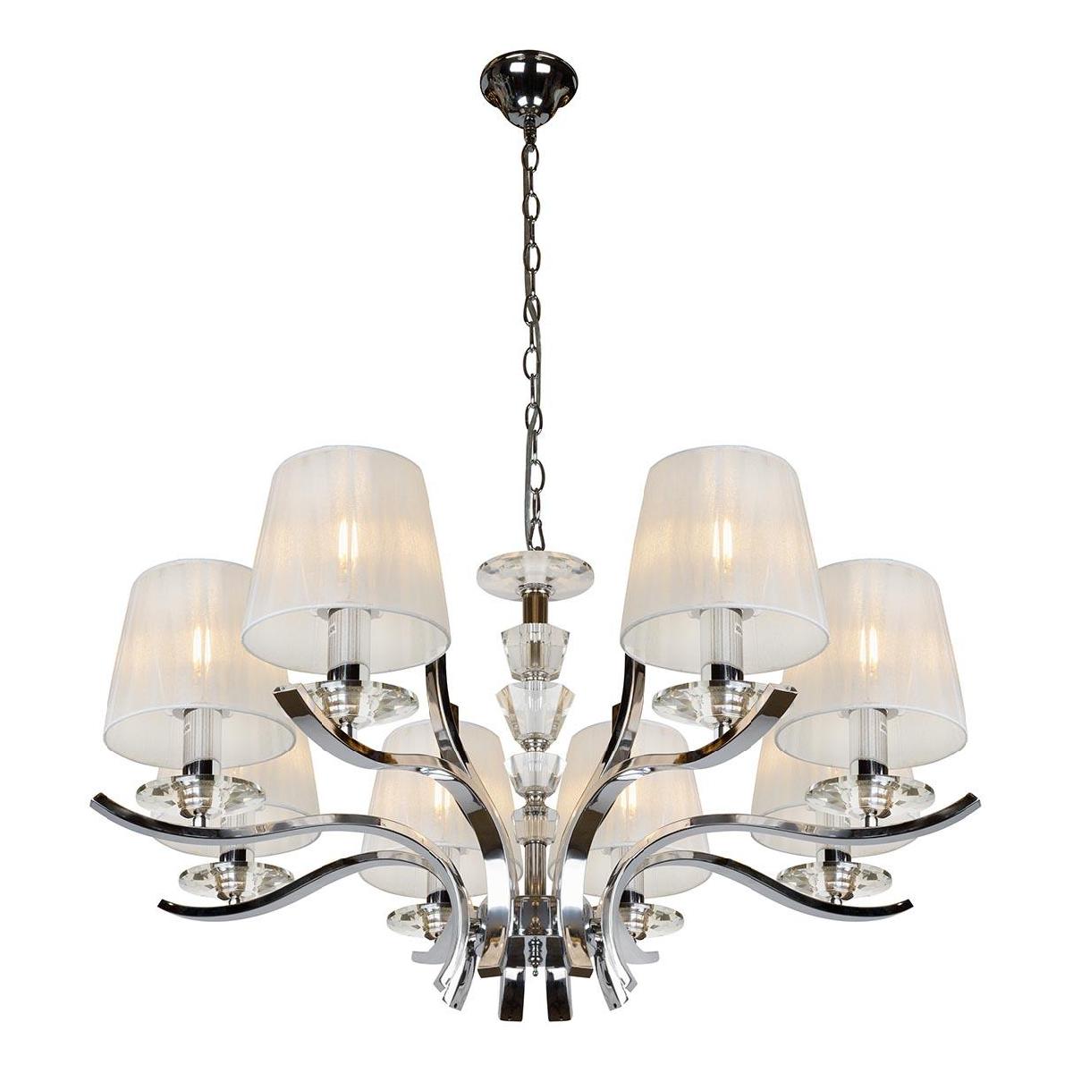 Подвесная люстра iLamp Omega RM5231/8CR от Китайского бренда iLamp из коллекции Omega будет удачно смотреться в гостиной в стиле Арт-деко. Светильник выполнен из ткани с плафонами в форме конуса белого цвета.